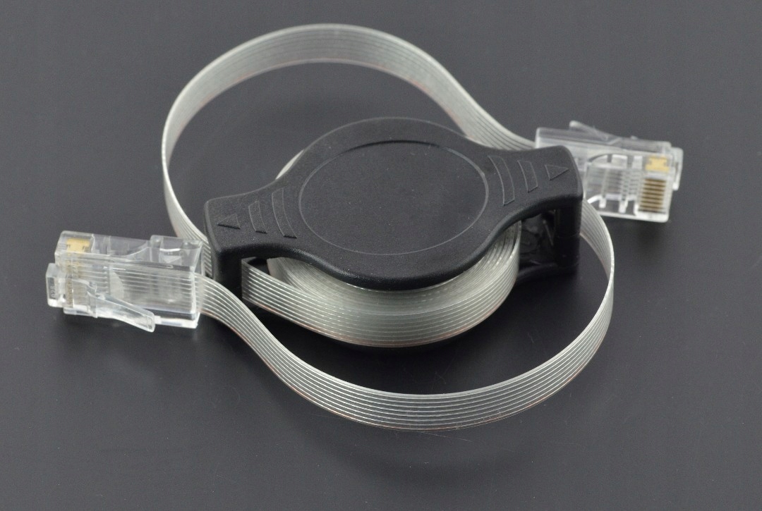 Спиральный кабель RJ45 с разъемами RJ45 на обоих концах. Длина кабеля составляет 1 метр.