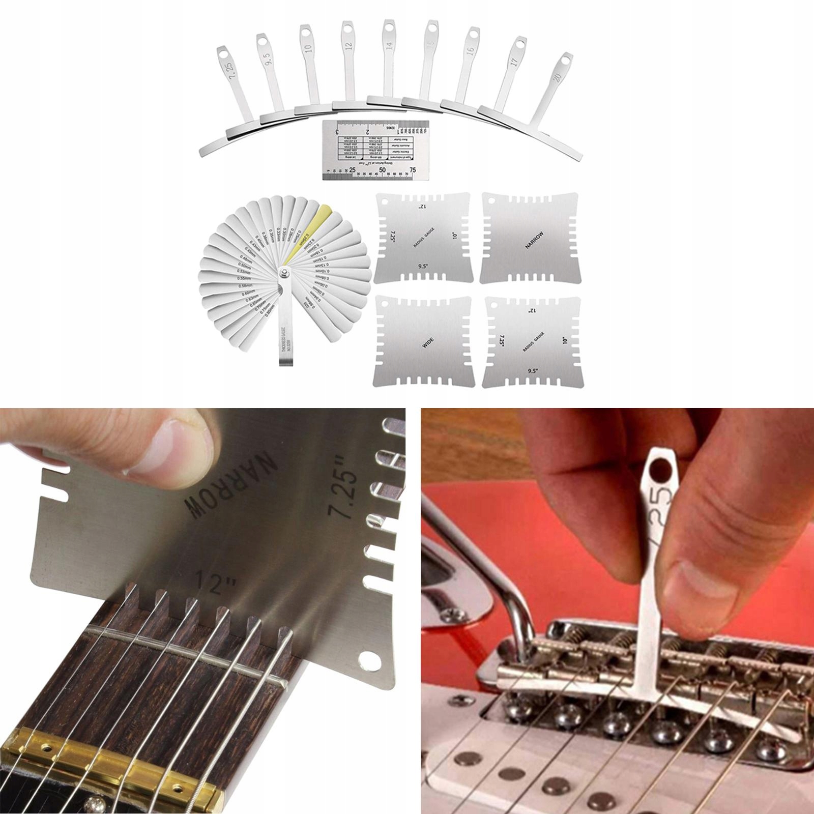 1 набор инструментов для гитарных мастеров, включая гитарный калибр, струнную линейку, калибр с 32 зазорами, калибры для гитарных вырезов.