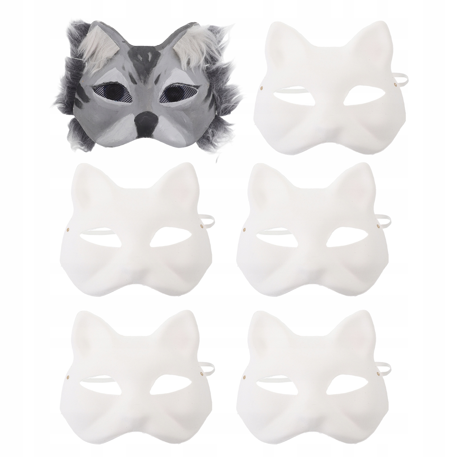 ⭕1 DIY SET CAT MASK MASK Пустые окрашенные бумажные маски с войлочной тканью и искусственными мехами для маскарадных украшений для косплей -вечеринок на Хэллоуин h2>