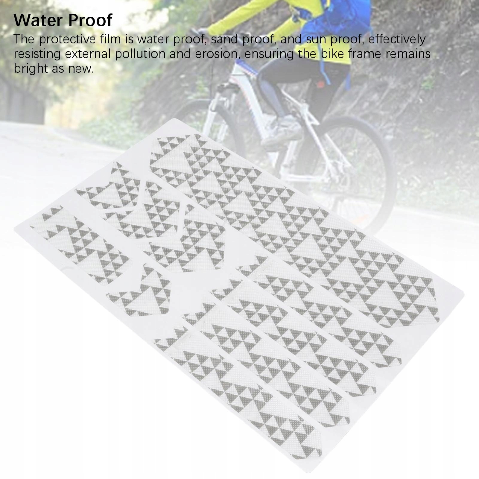 4. Водонепроницаемость: защитная пленка является доказательством воды, песка и звука, эффективно основанных на внешнем загрязнении и эрозии, гарантируя, что рама велосипеда остается ясной как новой.