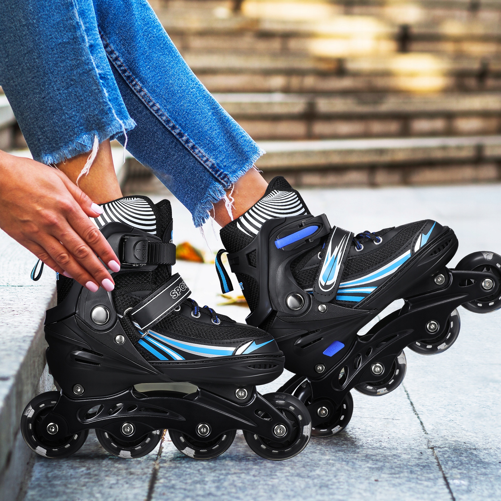 ✔Регулируемый размер: роликовые хоккейные коньки можно регулировать по размеру стопы, что делает их подходящими как для взрослых, так и для детей.