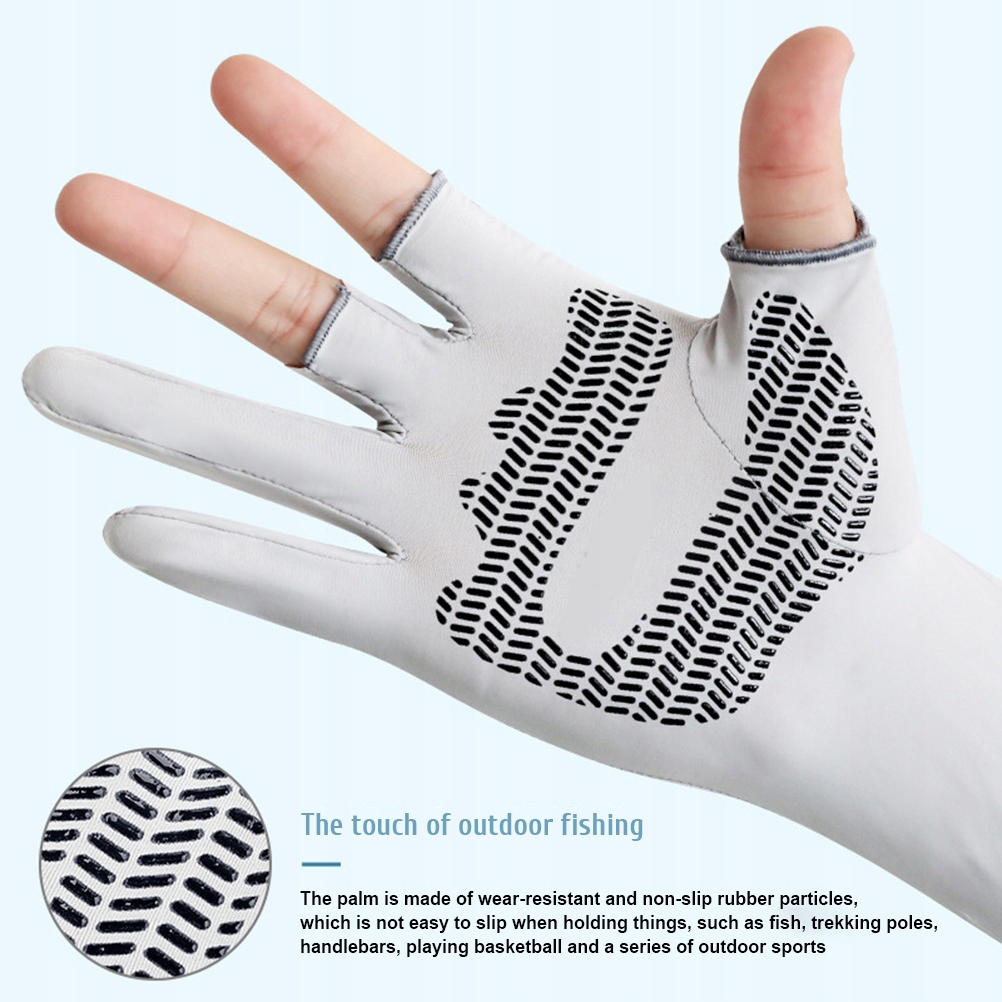 Особенности: нескользящие резиновые частицы на ладони, открытые три пальца, защита от солнца, дышащий, впитывающий пот, быстросохнущий, прохладный.