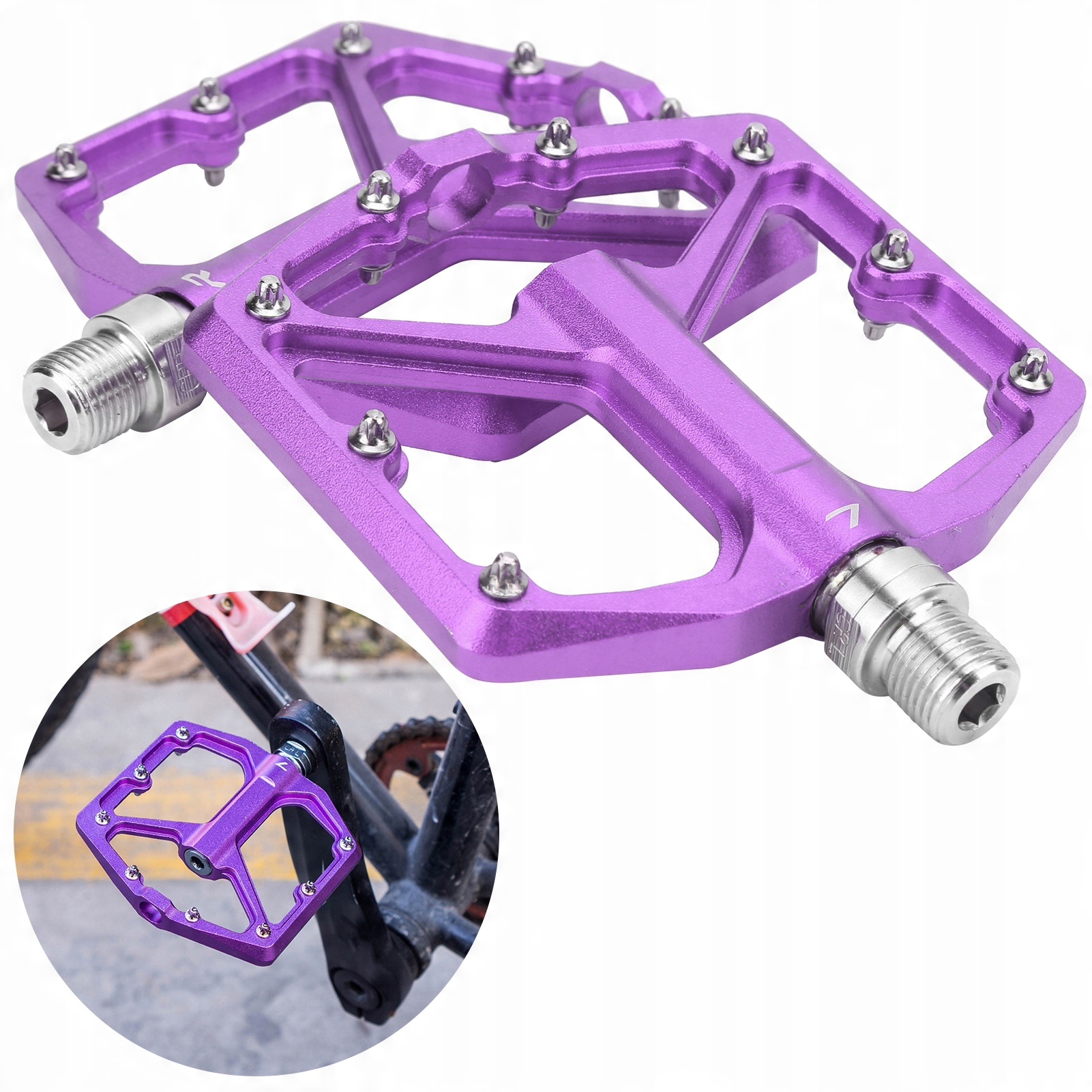 1 пара педалей ZTTO для горного велосипеда, нескользящие плоские педали на велосипедной платформе из алюминиевого сплава (фиолетовый)