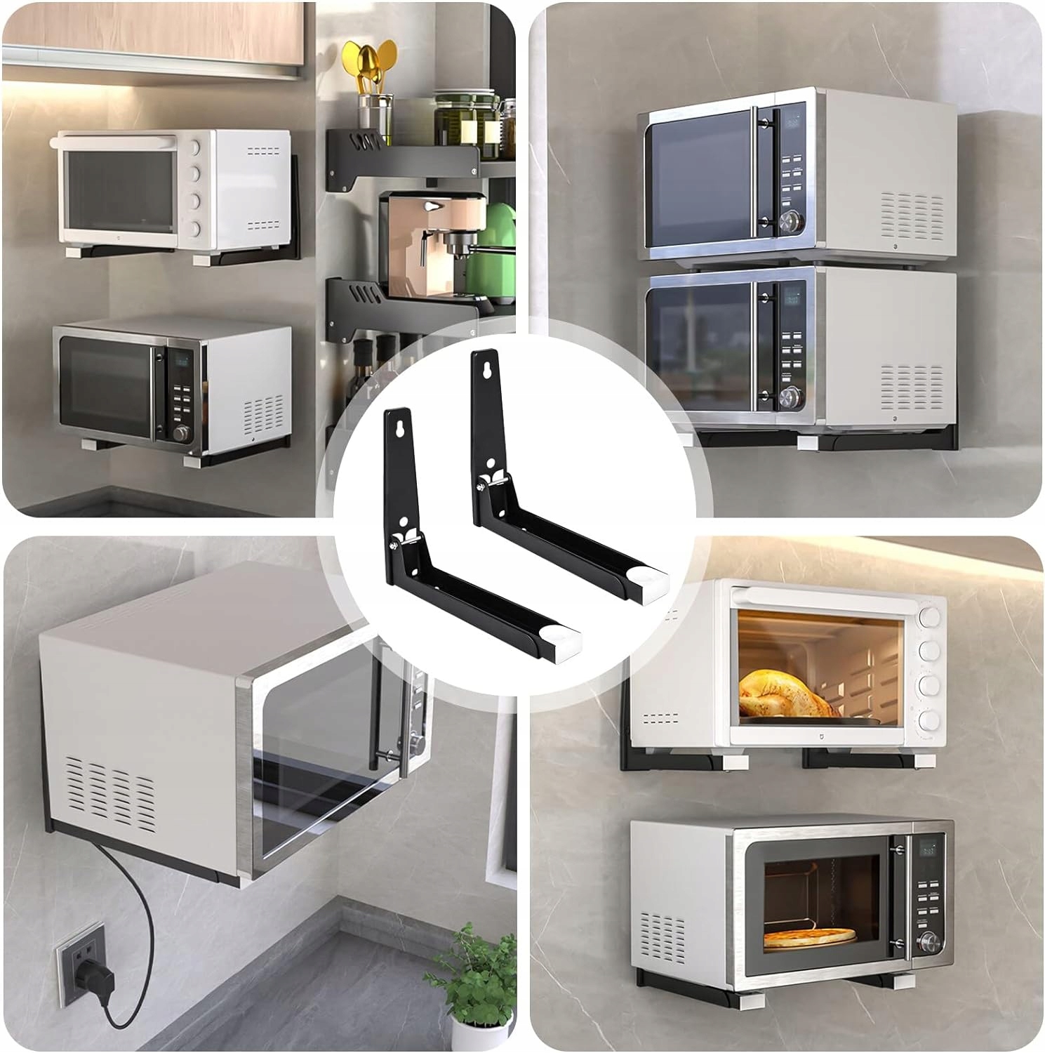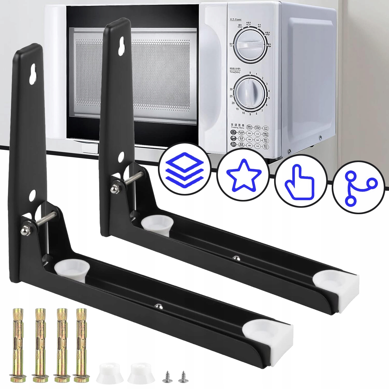 💎💎💎 Высококачественный материал: Настенный держатель для микроволновой печи изготовлен из нержавеющей стали, окрашен в черный цвет, устойчив к коррозии, долговечен, прочен и не деформируется.