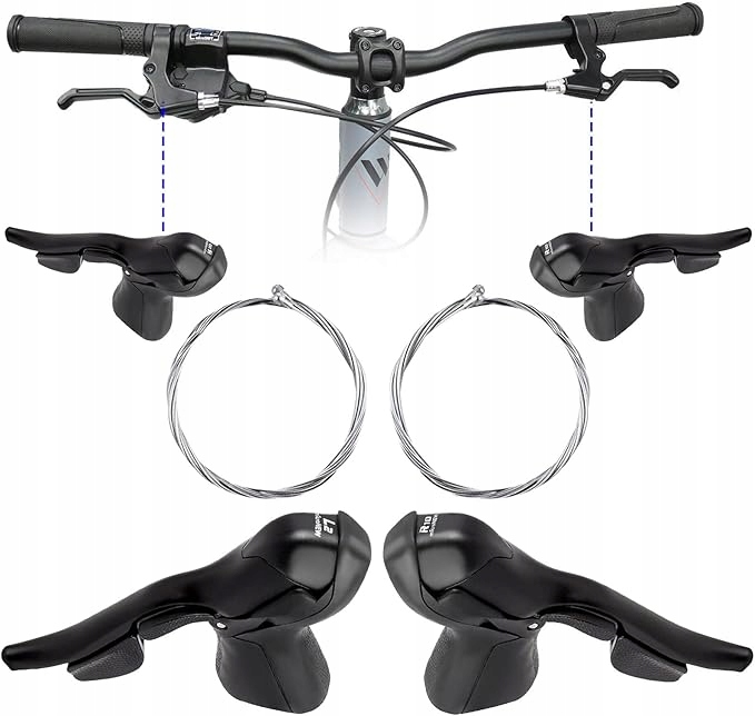 - Набор включает в себя: 1 пара рычагов велосипедной шестерни, 2 x переключающего кабеля, 2 x тормозного кабеля.