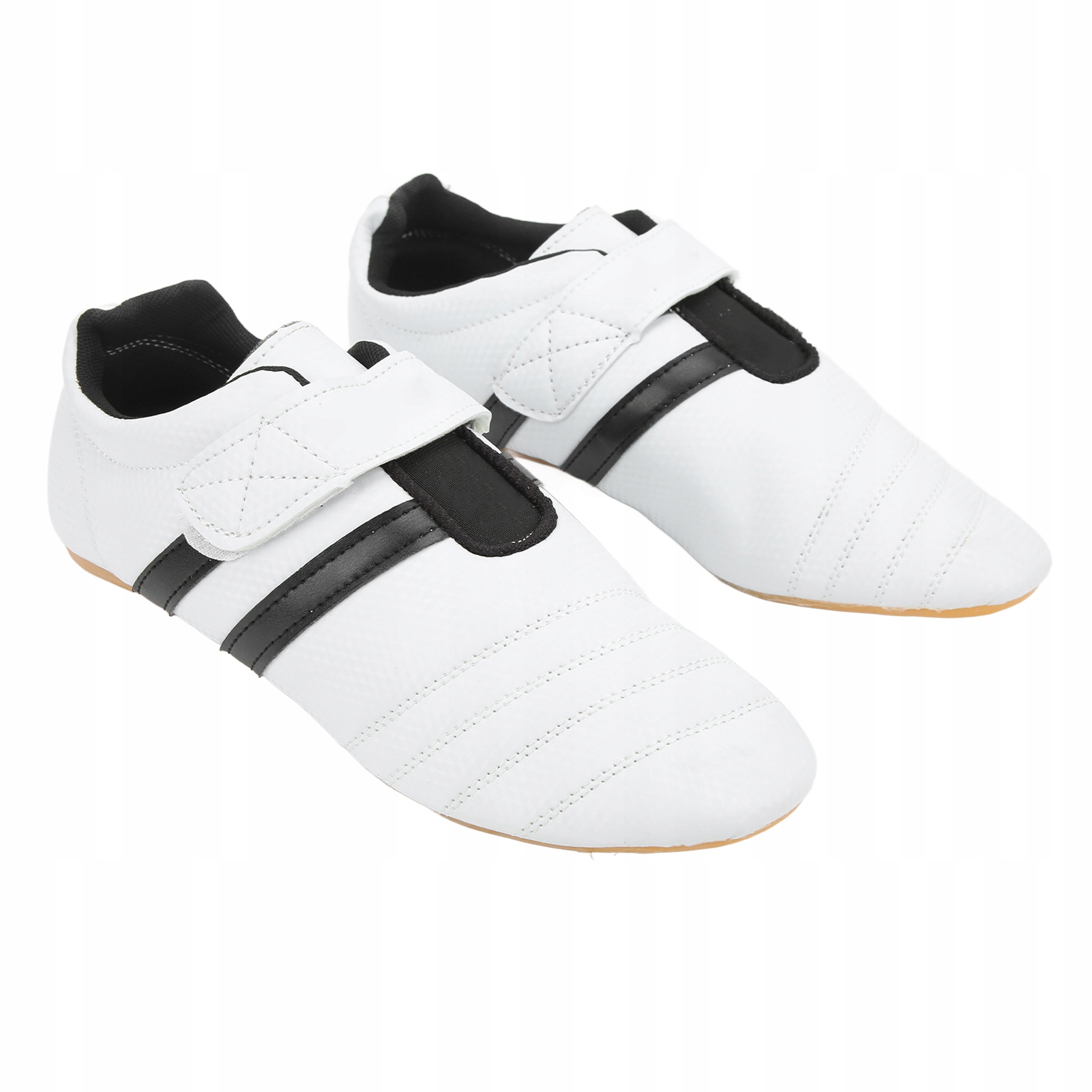 1. Материал из искусственной кожи: обувь для тхэквондо изготовлена из искусственной кожи, имеет мягкий вес, стойкость к истиранию и долговечность.