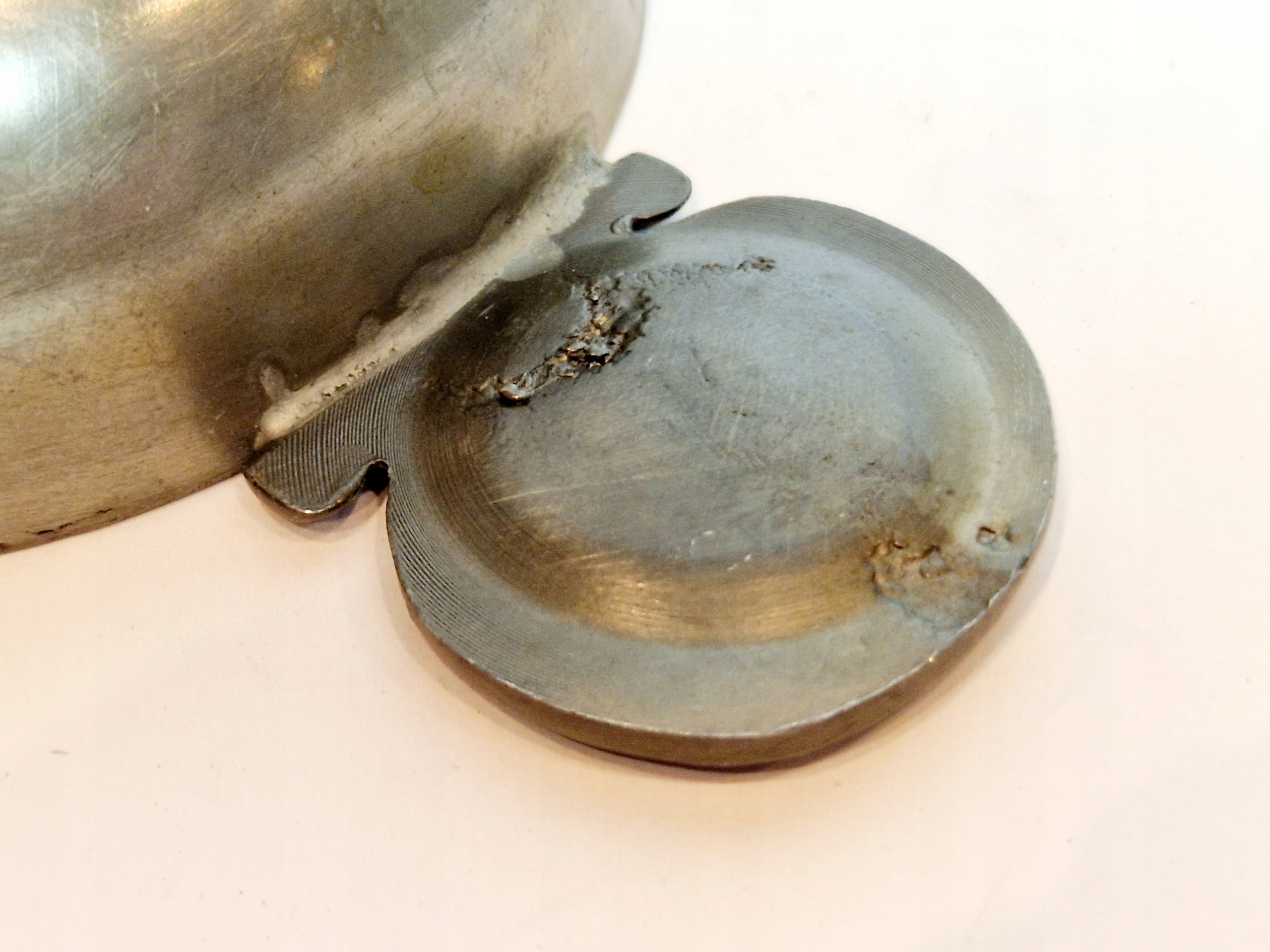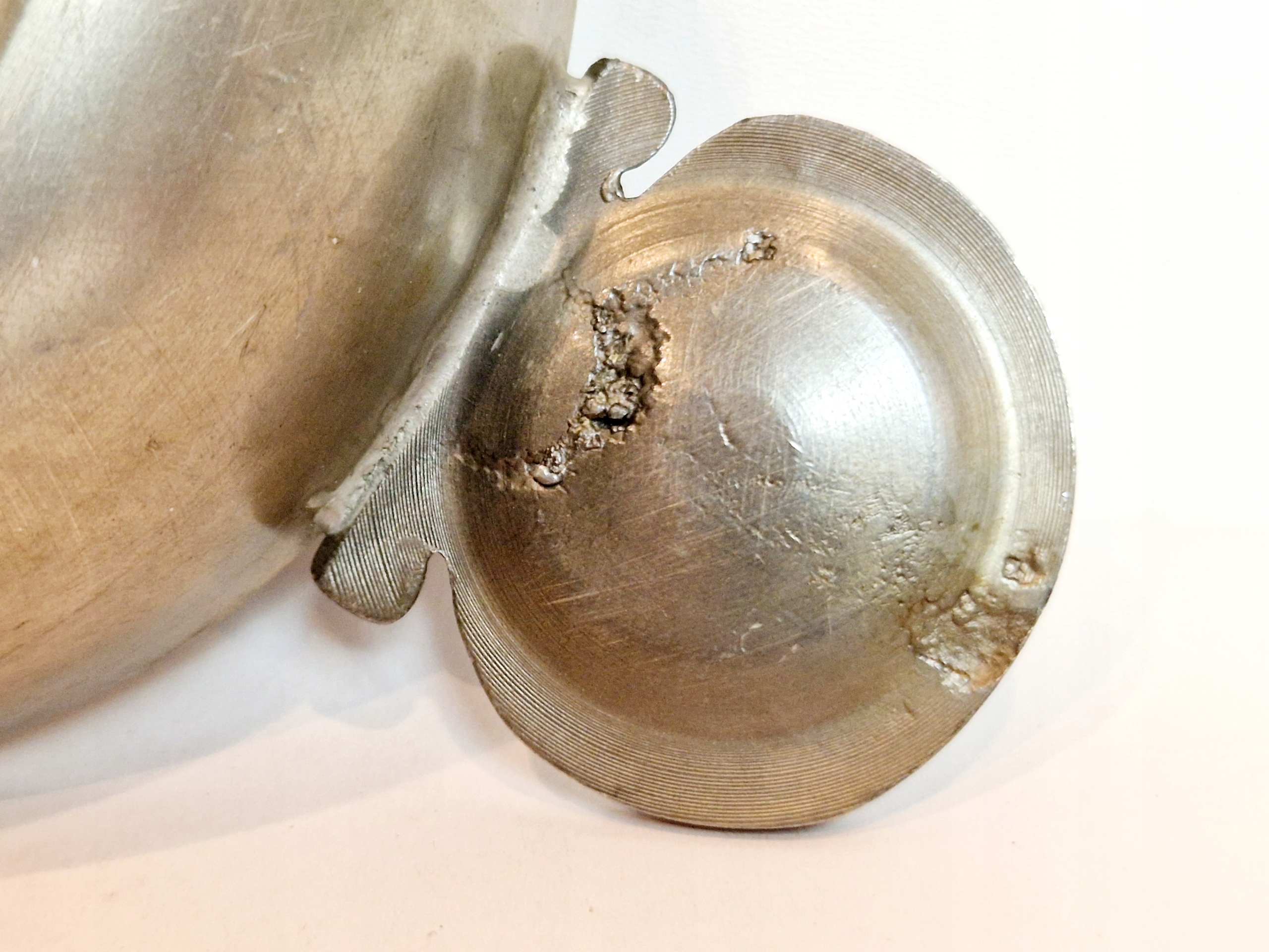 Жестяная банка покрыта старая патина - сосуд недавно не чистился.