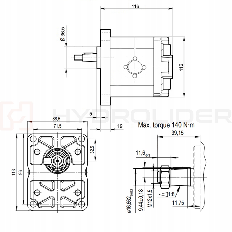 1-СЕКЦИОННЫЙ ЗУБЧАТЫЙ ГИДРАВЛИЧЕСКИЙ НАСОС, ГРУППА 2, ЛЕВЫЙ, 16см3, производительность: 24 л/мин