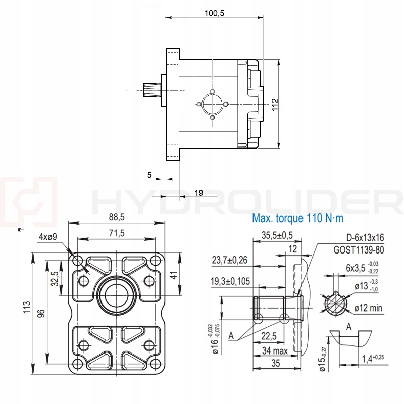 1-сечение Гидравлической насосной группы 2 Законы 19CM3 Производительность: 27,1 л/мин