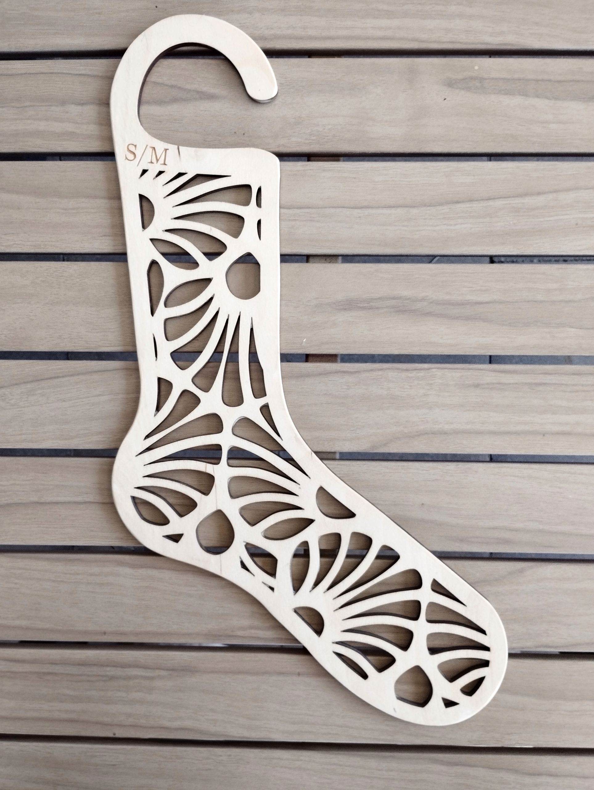 Socker S/M (EU 36–38), изготовленный около 5 мм, изделия из березы, трехкратный лакированный акриловый лак - это элегантный и долговечный инструмент, идеально подходящий для блокировки, сушки и представленных вязаных носков