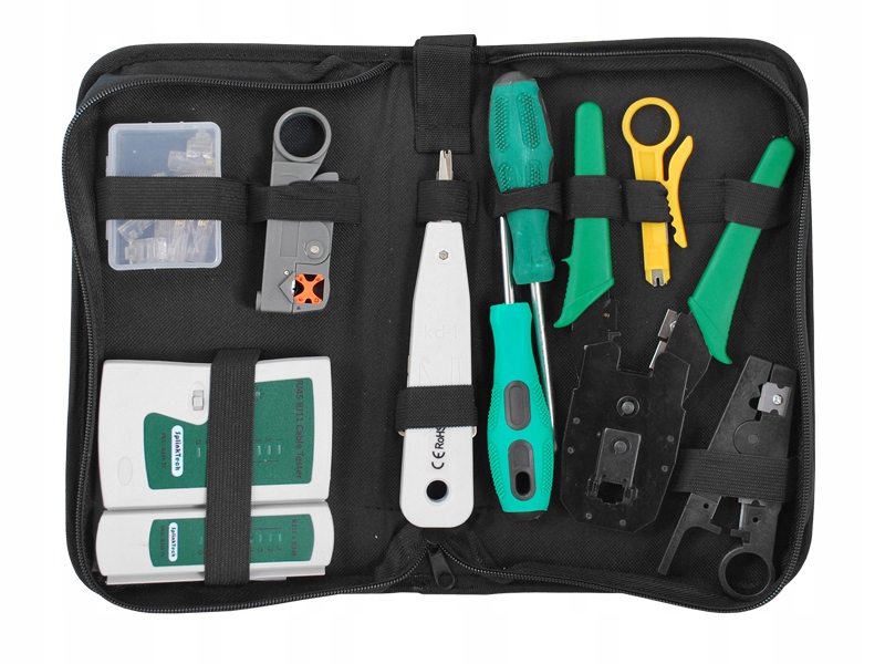 Удобный набор инструментов, необходимых при работе с телефонными или сетевыми кабелями.