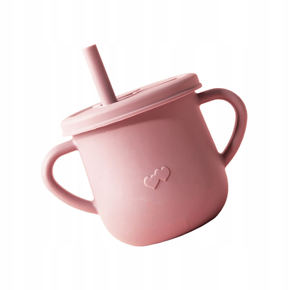 1 шт. СЕРЕБРЯНАЯ КРУЖКА С ДВУМЯ РУЧКАМИ И ПРОТИВОСКОЛЬЗЯЩЕЙ СИЛИКОНОВОЙ СОЛОМКОЙ
