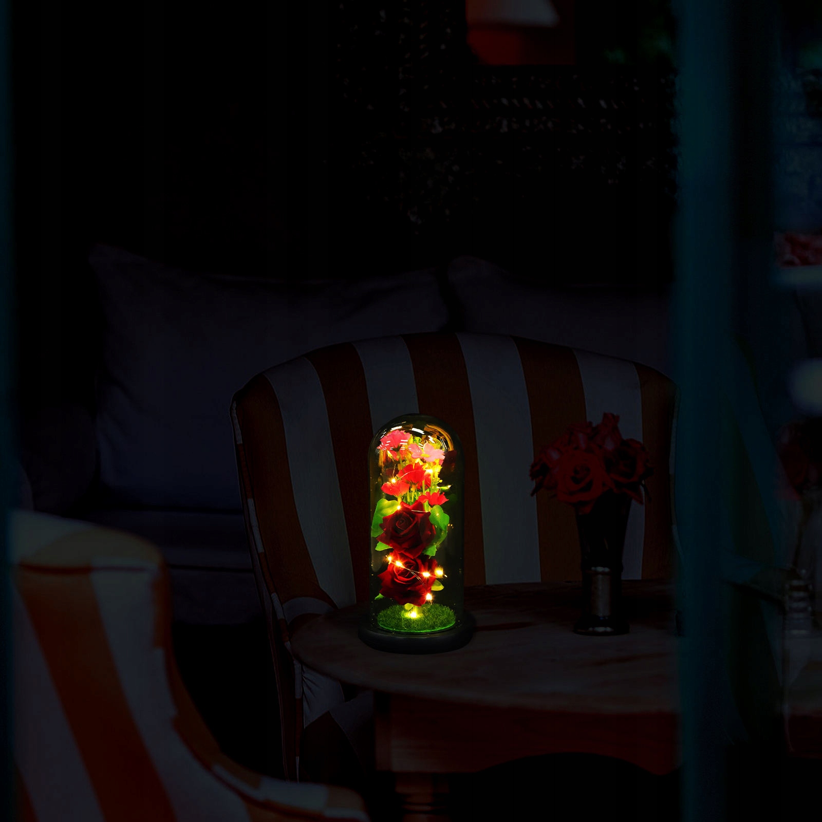 1 шт. изысканное светодиодное цветочное украшение под стеклянным куполом