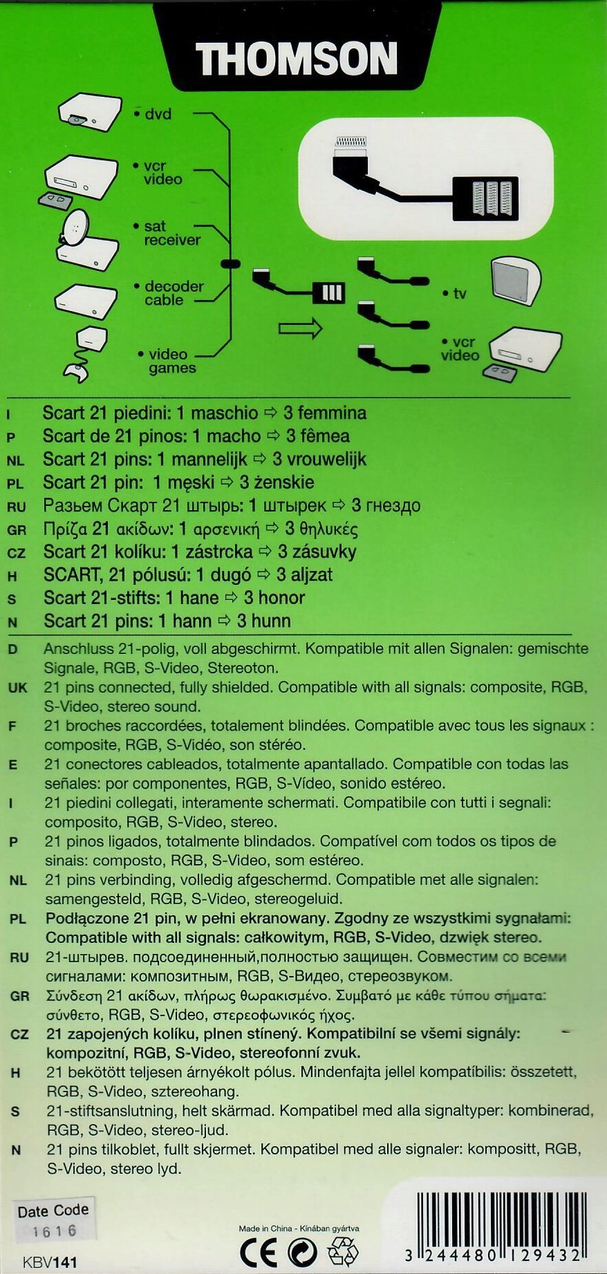 Кабель KBV141 французской компании THOMSON, неиспользованный, фирменный и плотно упакованный в блистер.