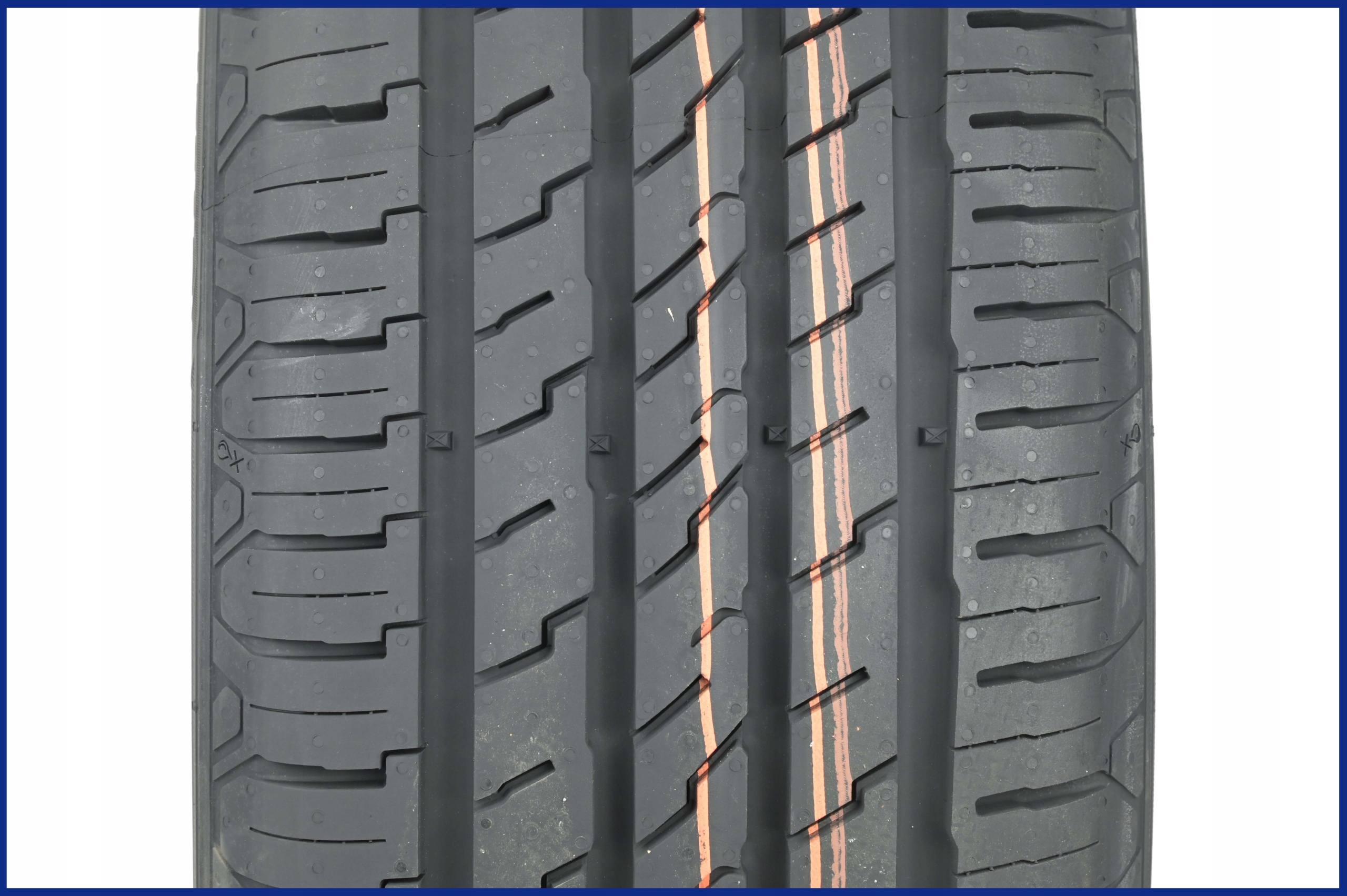- Технологически совершенные асимметричные ламели в средних ребрах протектора дополнительно улучшают контакт шины и тем самым увеличивают поверхность контакта с асфальтом.