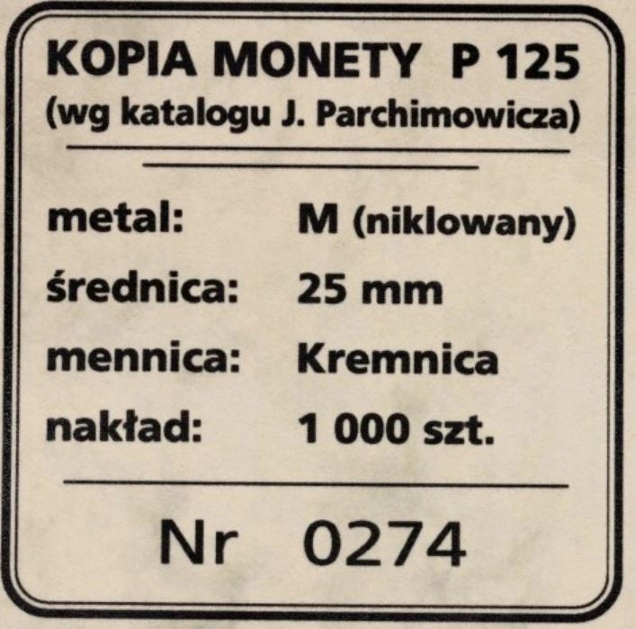 На фотографии ниже изображена оригинальная монета в пруфе без надписи PROOF, со знаком монетного двора и зерновым венком, отчеканенная с реверсом, разработанным Юзефом Амиллером, и аверсом М.Котарбинского, используемым для обращения никелевых злотых. Монета принадлежит к серии из четырех пробных злотых 1928 года, разработанных Юзефом Аумиллером, ни одна из которых не стала моделью для никелевой монеты этого номинала, выпущенной в 1929 году.