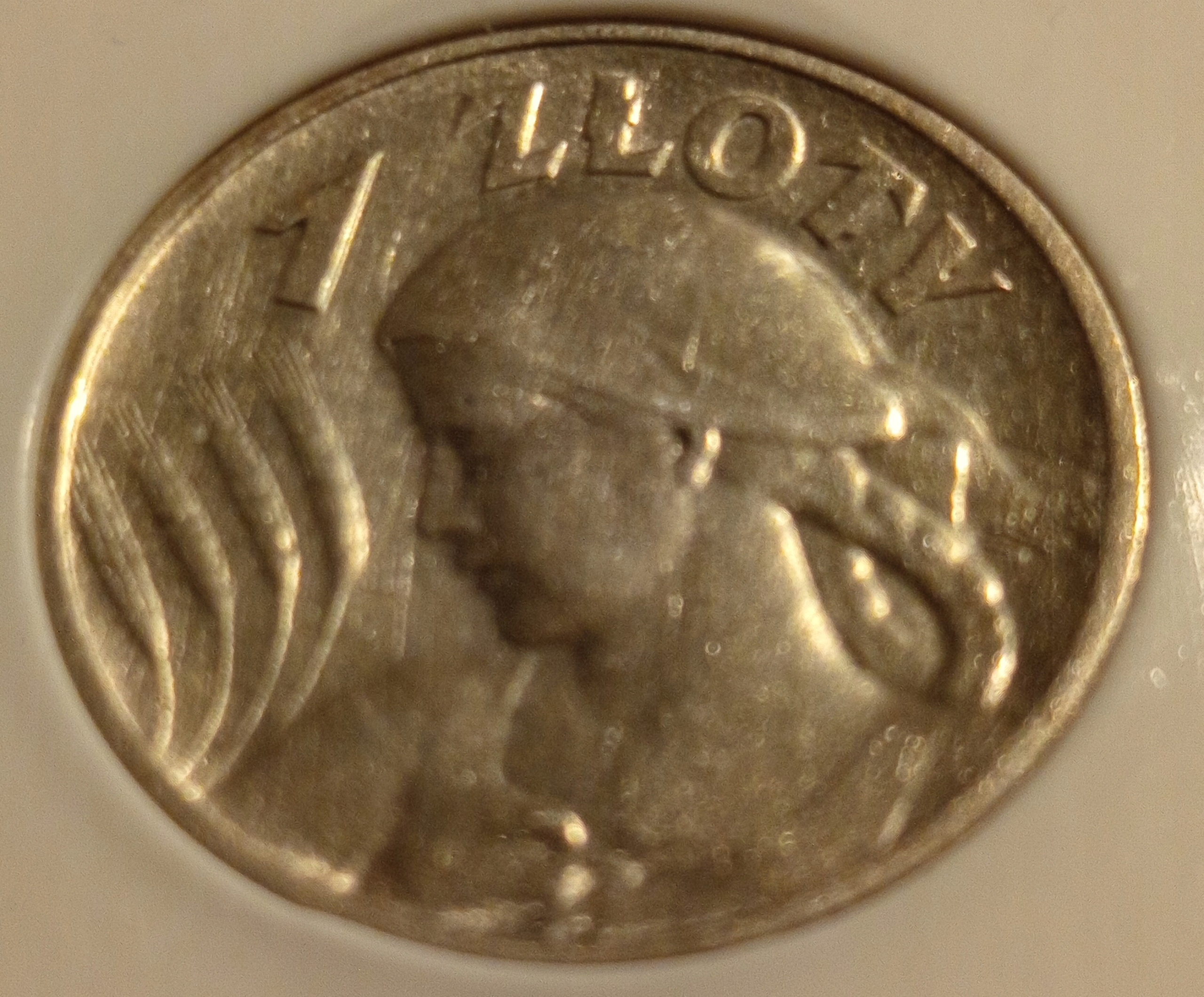 1 ЗЛОТИЙ 1925 "ЖНИВЯРКА" ("ЖЕНЩИНА С УШАМИ") - С ТОЧКОЙ (ЛОНДОН)