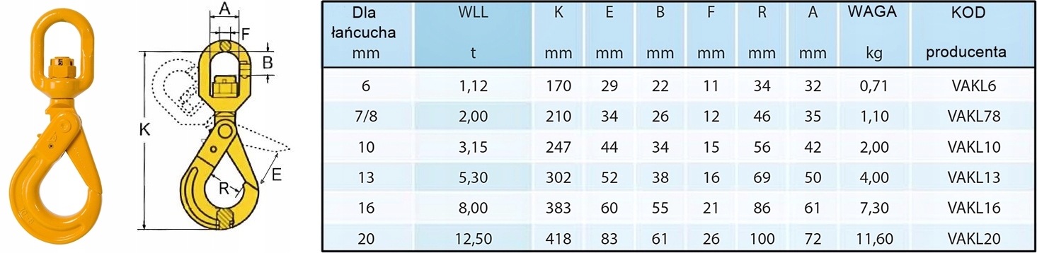 БЕЗОПАСНЫЙ САМОБЛОКИРУЮЩИЙСЯ ПОВОРОТНЫЙ КРЮК WLL/DOR: 1120 кг/1,12 тонны