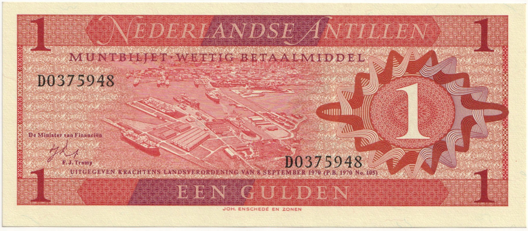 1.dbr.Антиле Хол., 1 Гульден 1970, П.20.а, Стр.1