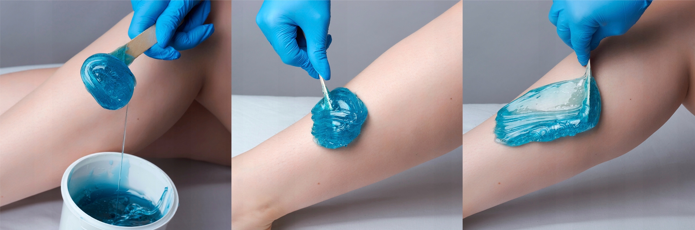 нагретый воск или другой приготовленный/готовый косметический подготовка с лопаточкой, затем положите на лопату и распределите слой подготовки на поверхности кожи в выбранном месте.