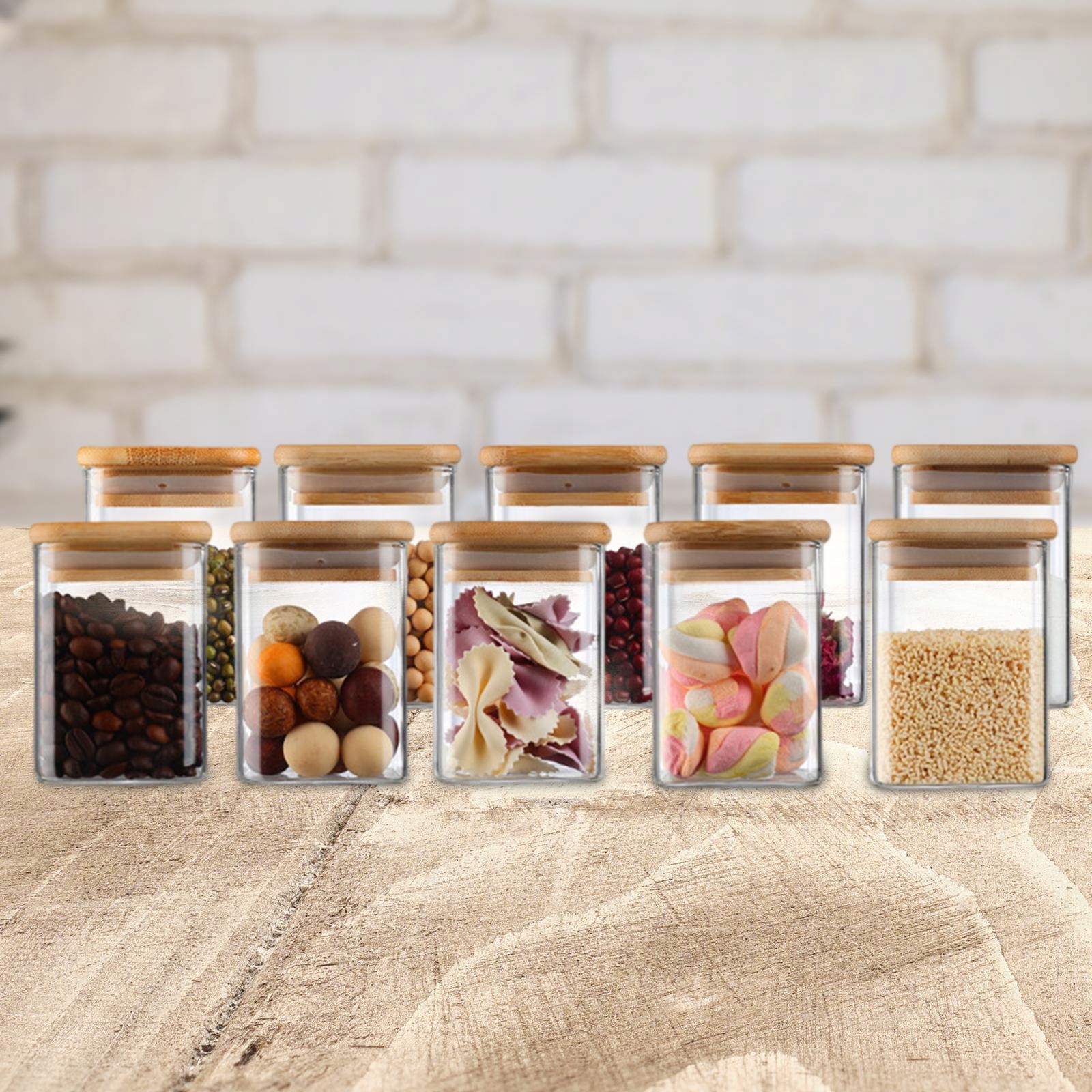 [Материал]: Эти банки для хранения продуктов изготовлены из бороцерального стекла с высоким, высоким, устойчивым к высоким температурам и твердым для использования. Хранение изготовлено из бамбукового материала, благодаря которому хранящаяся пища сухая и свежая.