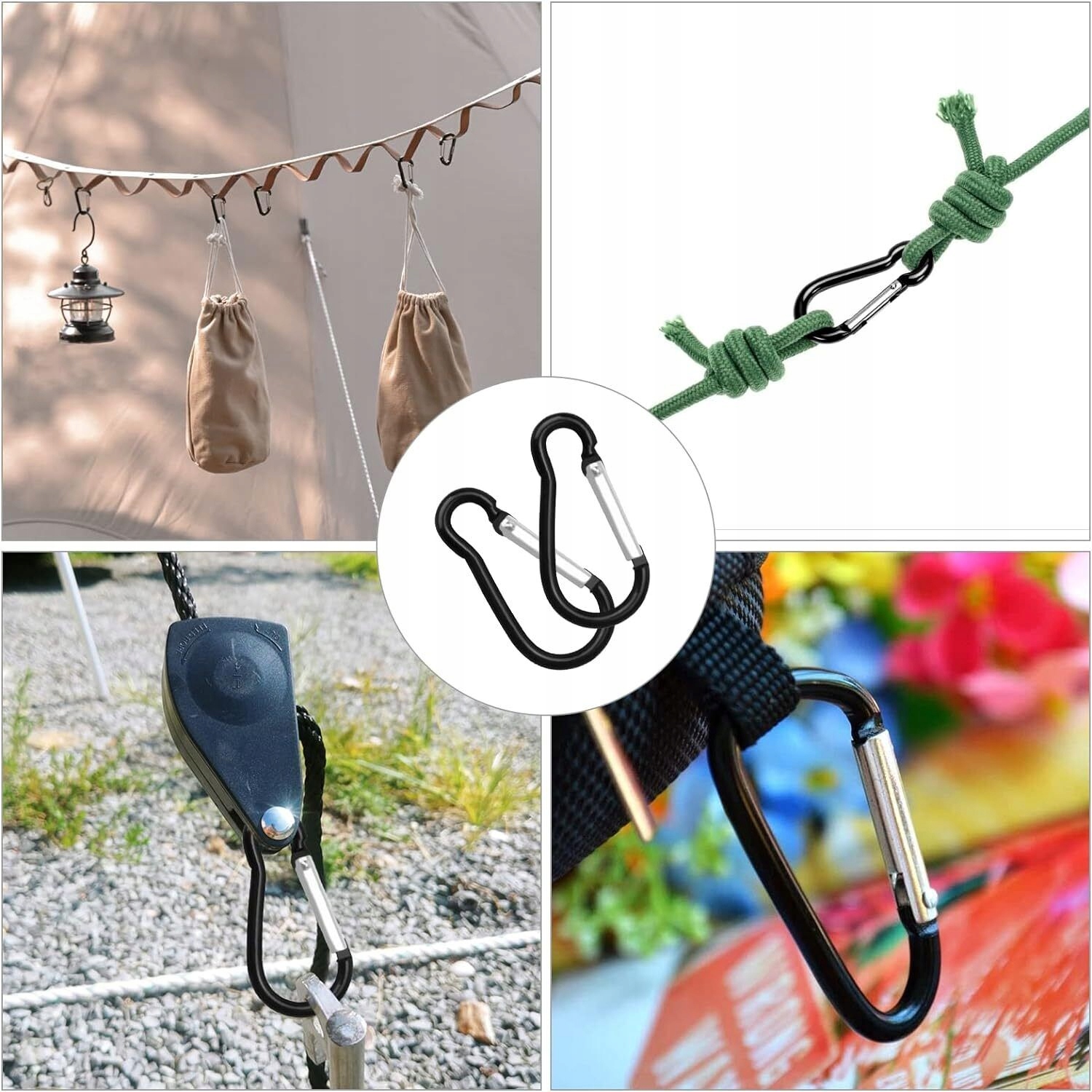 ⛺ [портативный размер] Размеры этого зажима для палатки составляют 8,2 х 2,5 х 2,6 см, светлые и портативные. Строительство с отверстием с диаметром 1,2 см, которое можно легко растянуть гибкой веревкой или крючком.