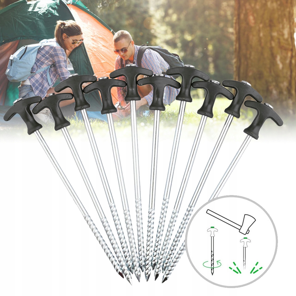 сельдь для палаток оснащены черными t -образными ручками, которые согнуты, чтобы они соответствовали пальцам, спасибо, почему Вы можете легко закрутить сельдь в землю и безопасно вытащить их