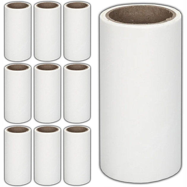 В наборе из 10 вставки для чистящего ролика. быстро и легко удаляет пальто животного, пыль и пух из одежды, мебели и сидений в автомобилях. Один дополнительный ролик содержит 10 листов.