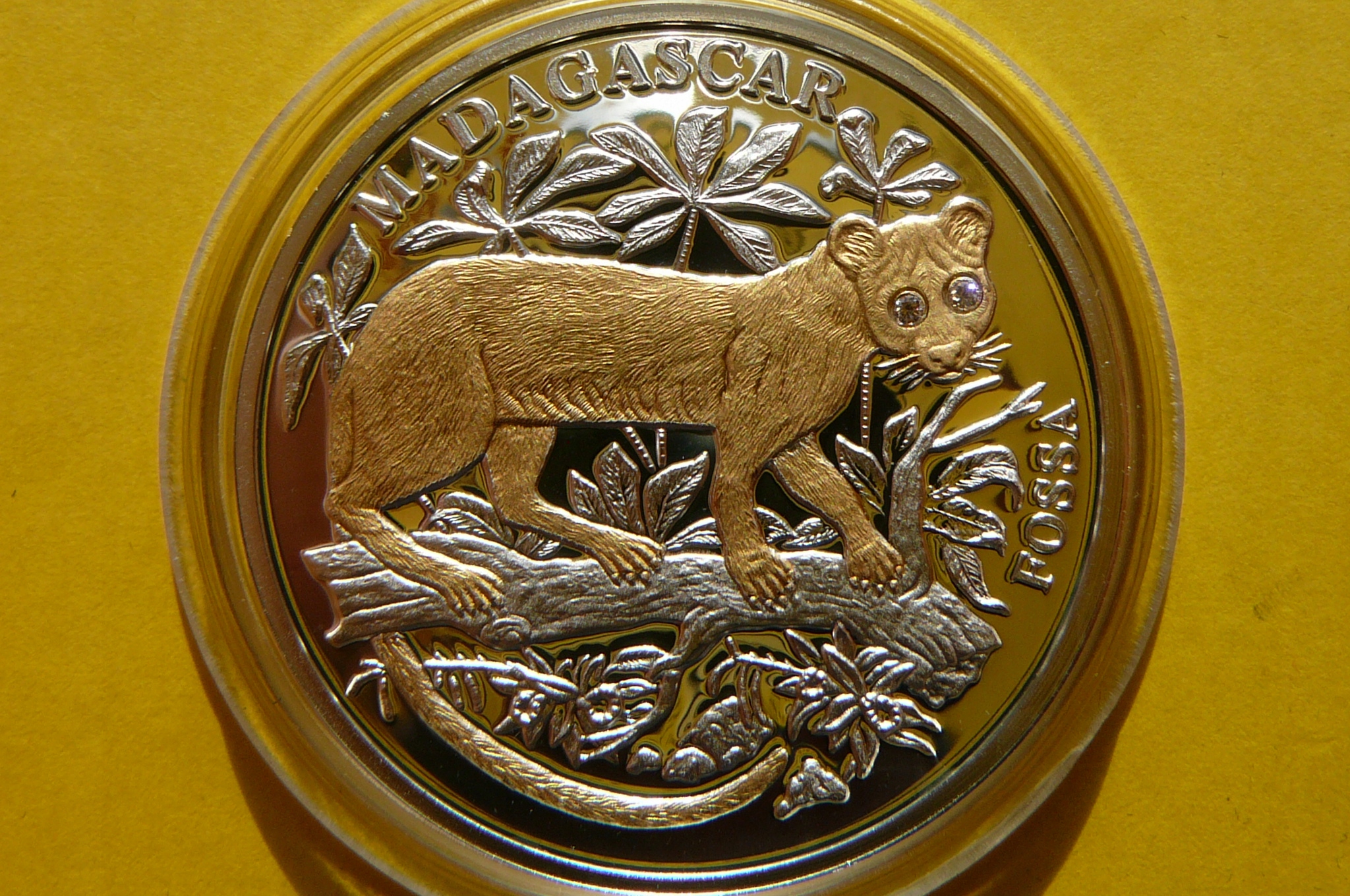НА АУКЦИОНЕ ПРЕДЛАГАЕТСЯ ОДНА КРАСИВАЯ ОРИГИНАЛЬНАЯ И РЕДКАЯ КОЛЛЕКЦИОННАЯ СЕРЕБРЯНАЯ МОНЕТА, ПОКРЫТАЯ ЧИСТЫМ ЗОЛОТОМ 24 КАРАТА С ДВУМЯ БРИЛЛИАНТАМИ - 10 ДОЛЛАРОВ - ЛИБЕРИЯ 2005 - МАДАГАСКАР ФОССА - ВЫХОДЯЩИЕ ВИДЫ / ЗАЩИТА ЖИЗНЕЙ ДИКИХ ЖИВОТНЫХ ЦРУ - ЧИСТОЕ СЕРЕБРО 999 ПРОБЫ С ПОКРЫТИЕМ 24 КАРАТНОГО ЗОЛОТА + ДВА БРИЛЛИАНТА В ГЛАЗАХ - PROF - МОНЕТНЫЙ - ОЧЕНЬ РЕДКАЯ И ДОРОГАЯ РЕДКОСТЬ - РЕКОМЕНДУЮ - НА ДРУГИХ АУКЦИОНАХ ПРЕДЛАГАЮ МОНЕТЫ ИЗ ЭТОЙ СЕРИИ, ИЗ ПОСЛЕДНИХ ФОТО - ПОСМОТРЕТЬ АУКЦИОН