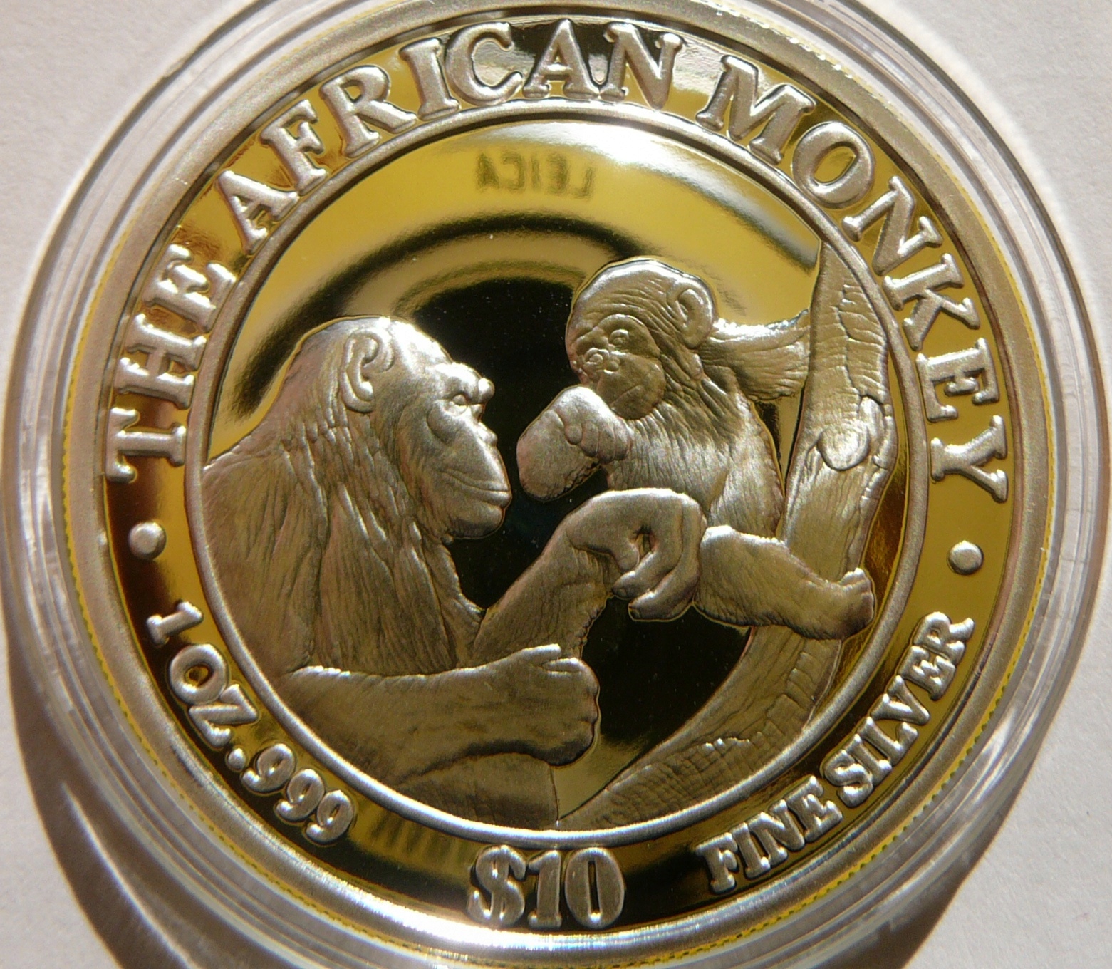 10 $ СОМАЛІЯ 1999 GORILLA MONKEY Ag 999 OZ PP -101