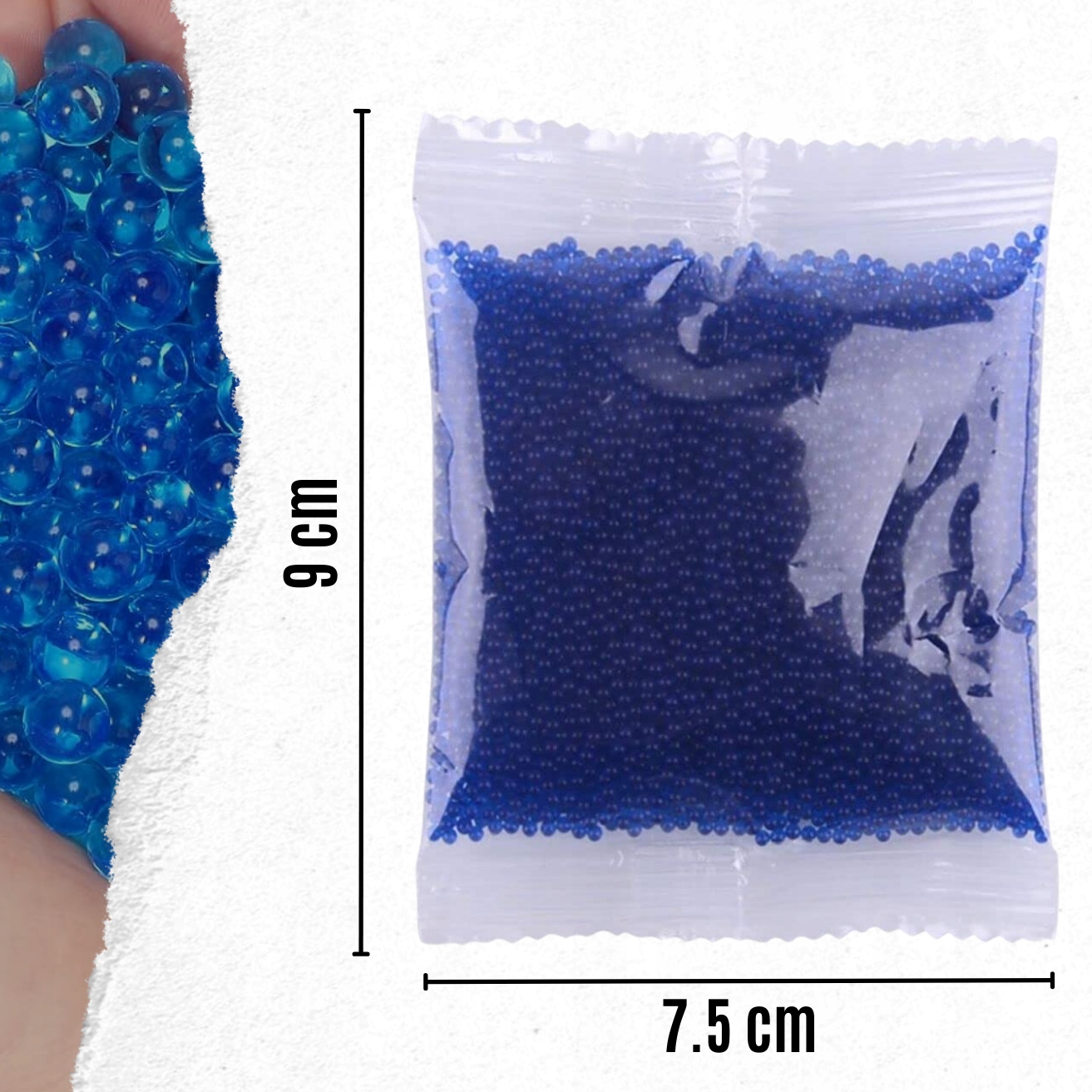 ✅Шарики гидрогеля имеют диаметр 1,5–2 мм в сухом состоянии, а при замачивании в воде он увеличивается до впечатляющих 7–11 мм.