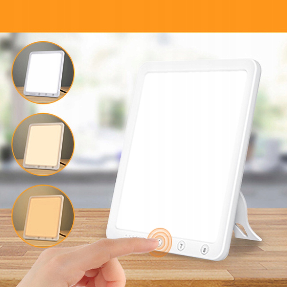 Лампа для светотерапии SAD предлагает 3 настройки цветовой температуры, включая теплый, естественный и белый свет для различных нужд.