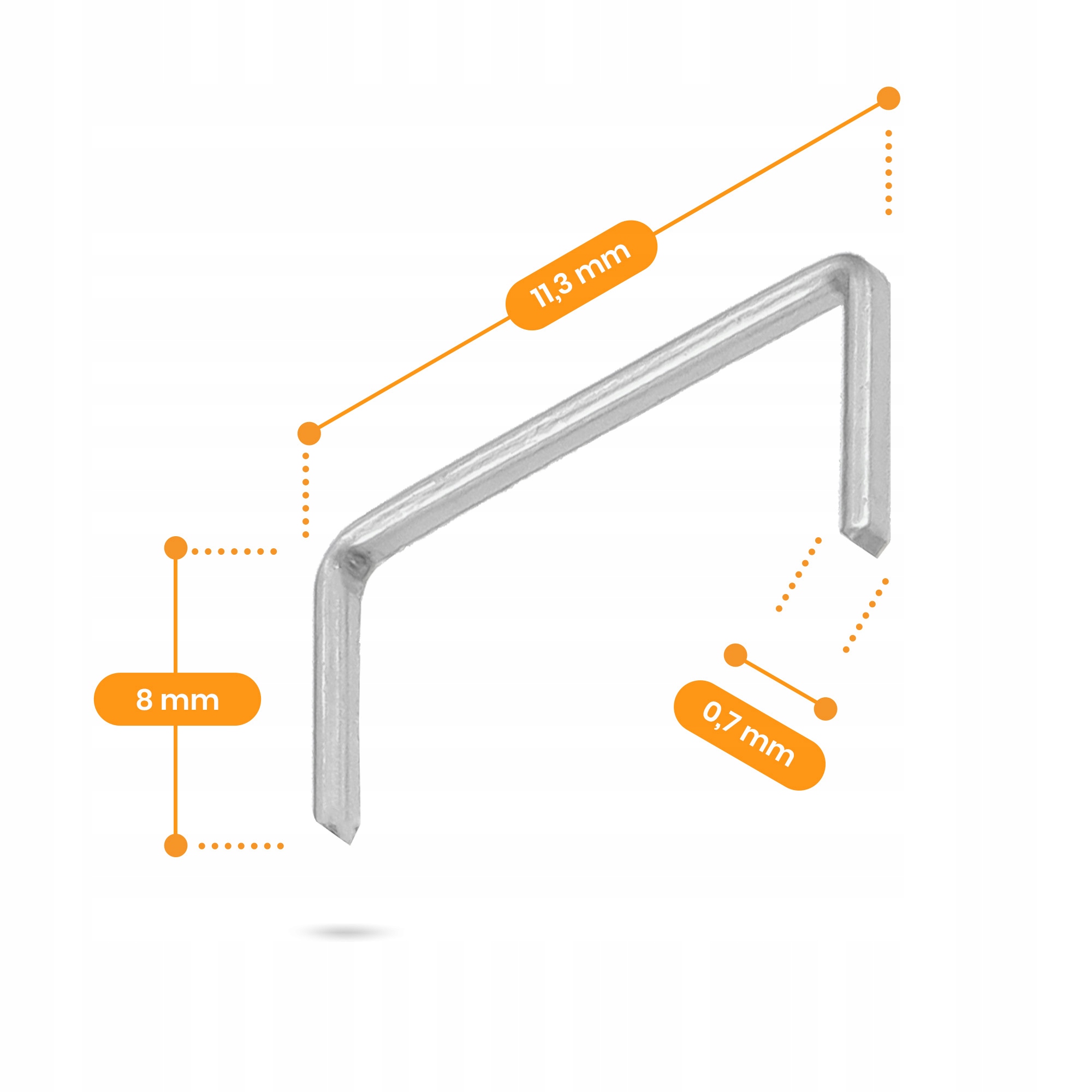 - Размеры скрепок: 8 мм х 0,7 мм х 11,3 мм
