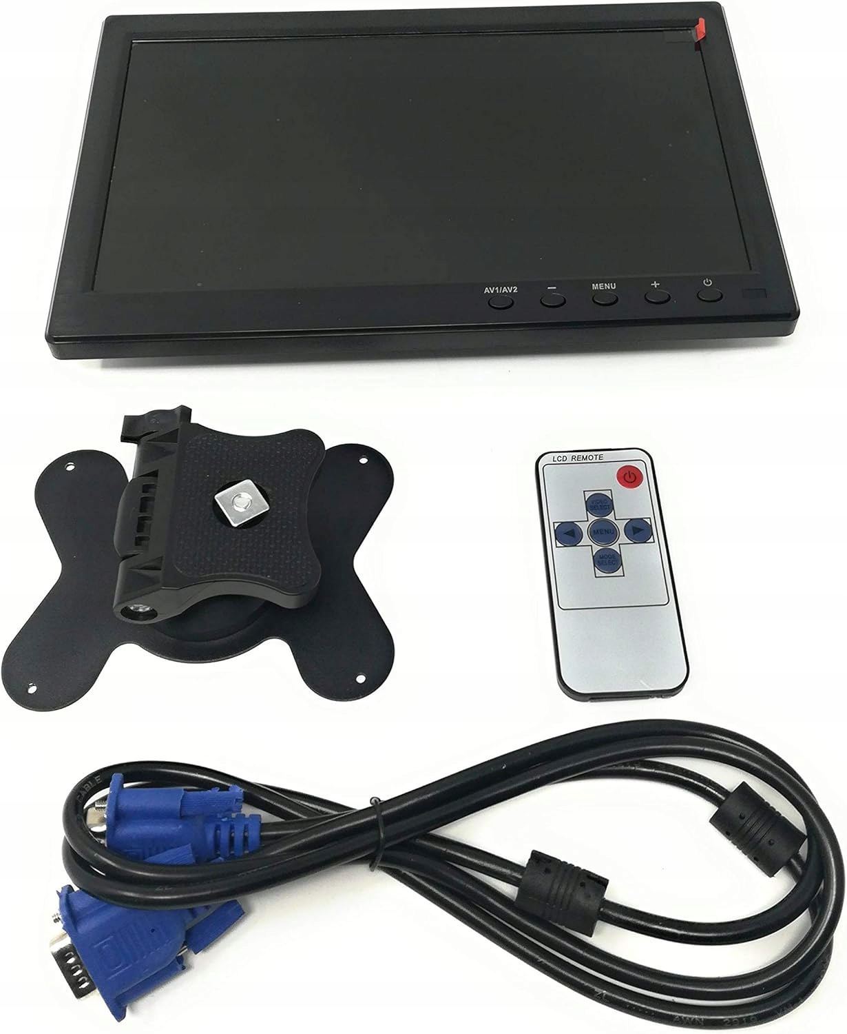 Новый TFT/LCD HD 10.1 "Портативный мониторинг видео, но также и для автомобиля и для подключения камеры реверса. У монитора есть два видео входа. Набор включает в себя пульт дистанционного управления, источник питания сети и подставку для монитора и кабель подключения VGA. Он имеет очень хорошее разрешение, благодаря тому, что вы можете отображать камеры или любое подключенное устройство для входных входных камеров с помощью парики. Реверсирование камеры или DVR 1080p/16: 9 Чистые и чистые изображения без излучения