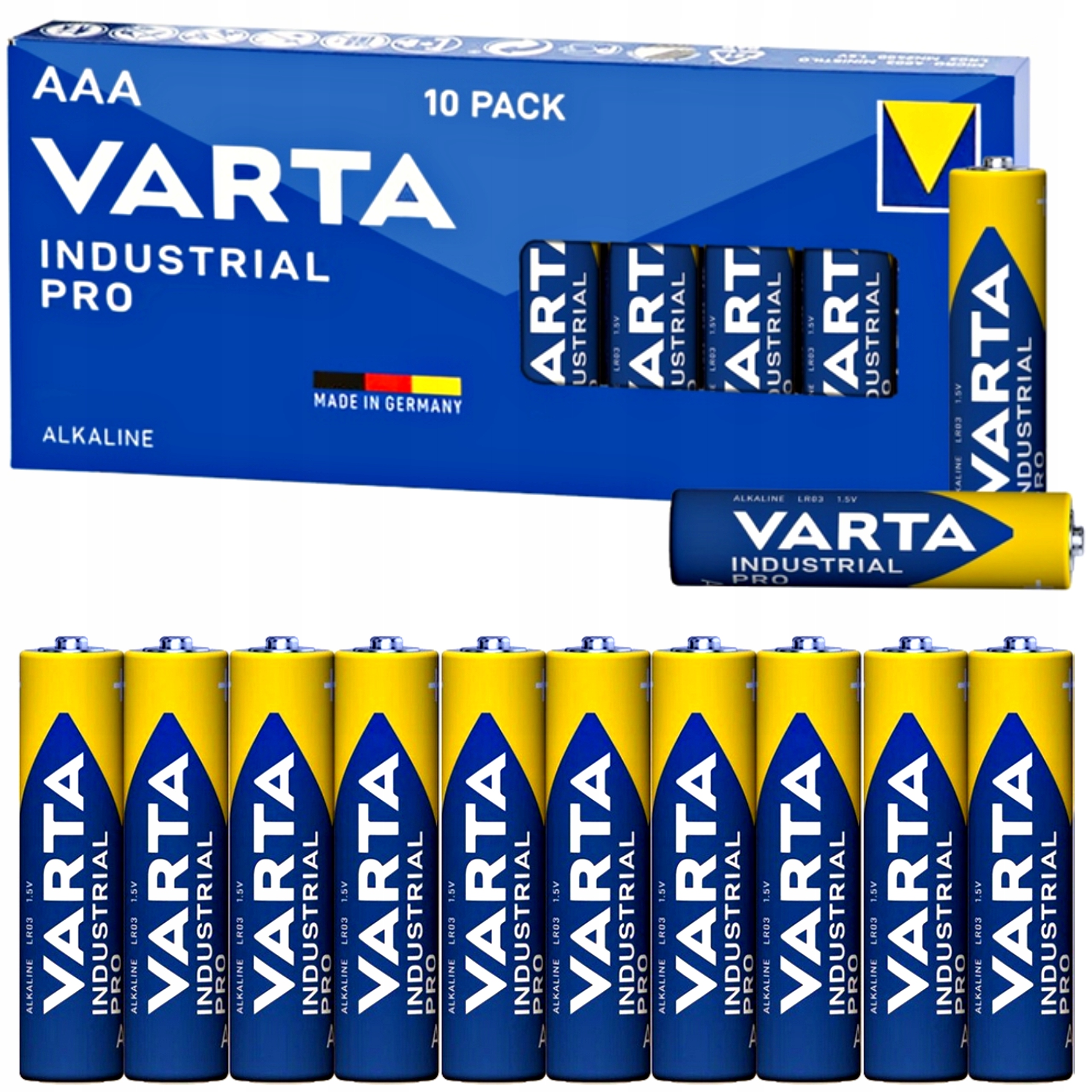 - 10 щелочных батарей VARTA Industrial Pro LR03. ААА