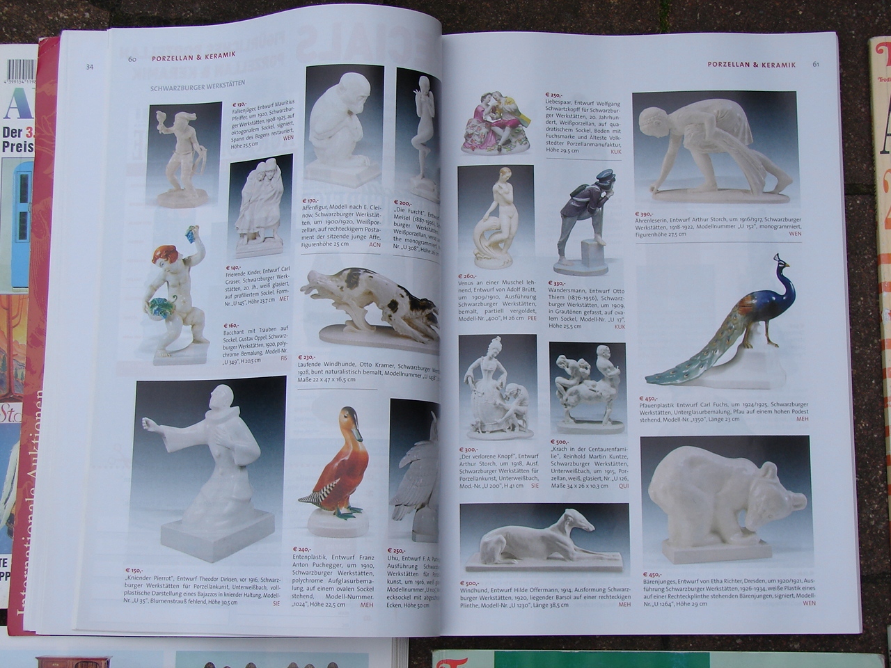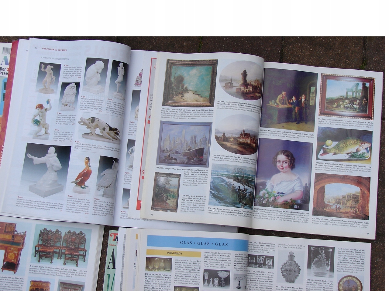 Десять кусочков немецких аукционных каталогов, касающихся различных типов антиквариата.
