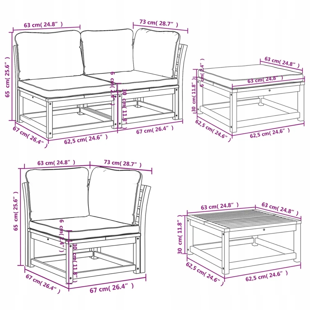 - Размеры подушки сиденья : 63 x 63 x 6 см (длина x ширина x толщина)