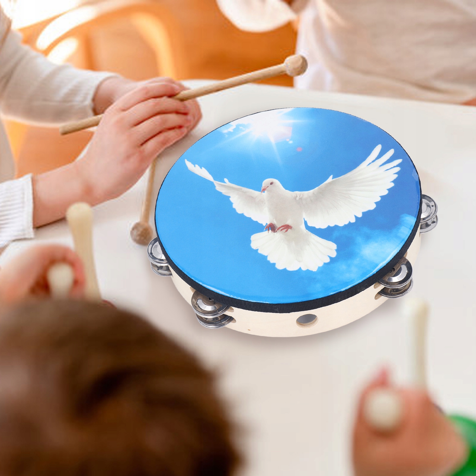 1. Бубен-колокольчик: 10-дюймовый бубен-колокольчик с двухслойными колокольчиками, издающий четкие и приятные звуки, подходящий для различных сцен.