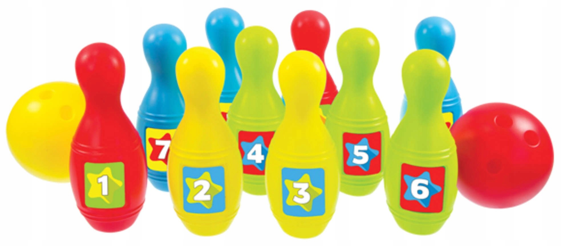 В наборе 12 штук. красочные пешки с номерами и 2 шара, необходимые для игры. Кегли для боулинга созданы специально для детей, обучающихся игре в боулинг и счету, у них нет острых краев.
