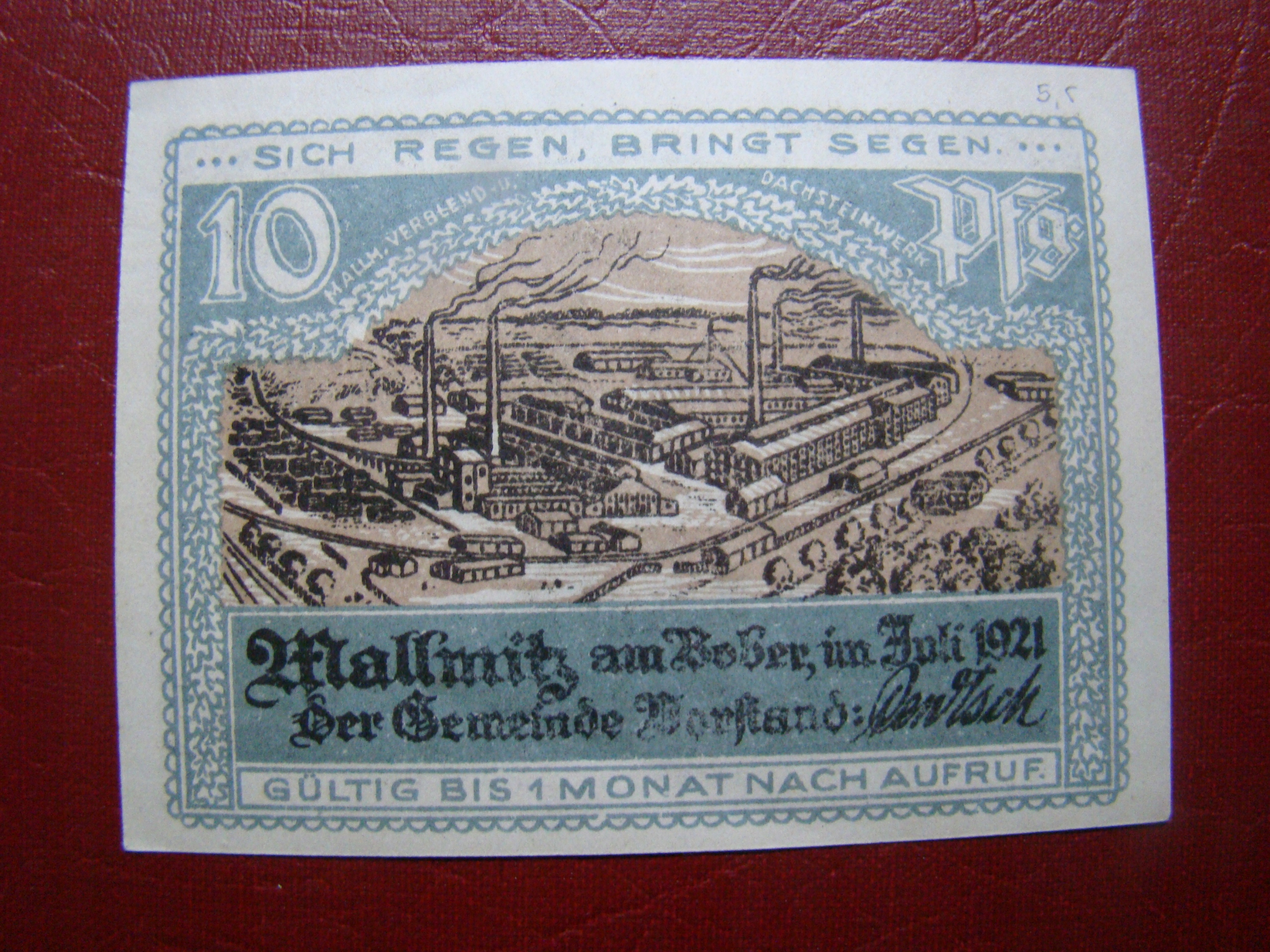 - Субтитры: вершина выглядит как девиз «Sich Regen, принести Segen», что означает, что «Движение приносит благословение», который предполагает ценность работы и бизнес для сообщества. Вниз, справа, видно подпись члена Совета Коммуны. Также было отмечено, что ваучер был действительным «до одного месяца после вызова», что предполагает временную ценность в период местных экономических трудностей.