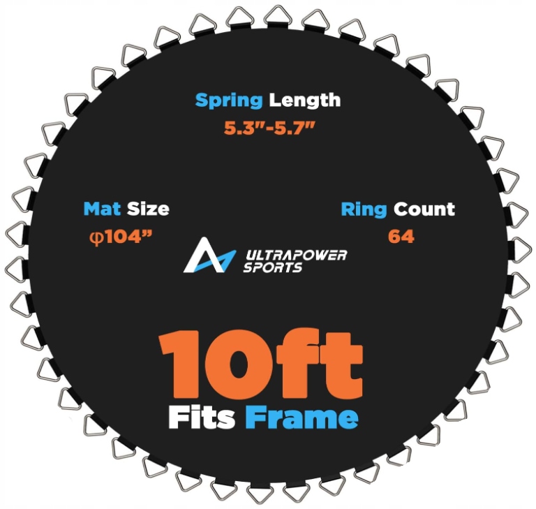 Информация об этом продукте h1> - Замена 10 -футового батутного батутного коврика: этот запасной батутный коврик предназначен для 10 -футового батута с 64 кольцами типа V, совместимых с широким ассортиментом внешних батутов. Диаметр коврика составляет 104 дюйма, подходит для пружин от 5,3 до 5,7 дюйма. Перед покупкой измерьте размер рамы батута и предыдущего прыжкового коврика, чтобы убедиться, что вы получите правильный коврик для прыжков.