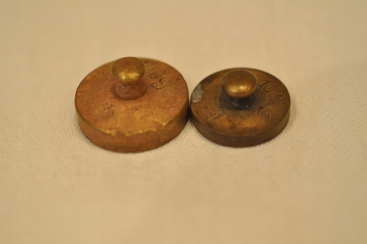 Гира весом 10 грамм имеет оловянное пятно на верхнем крае – тарирование (?).