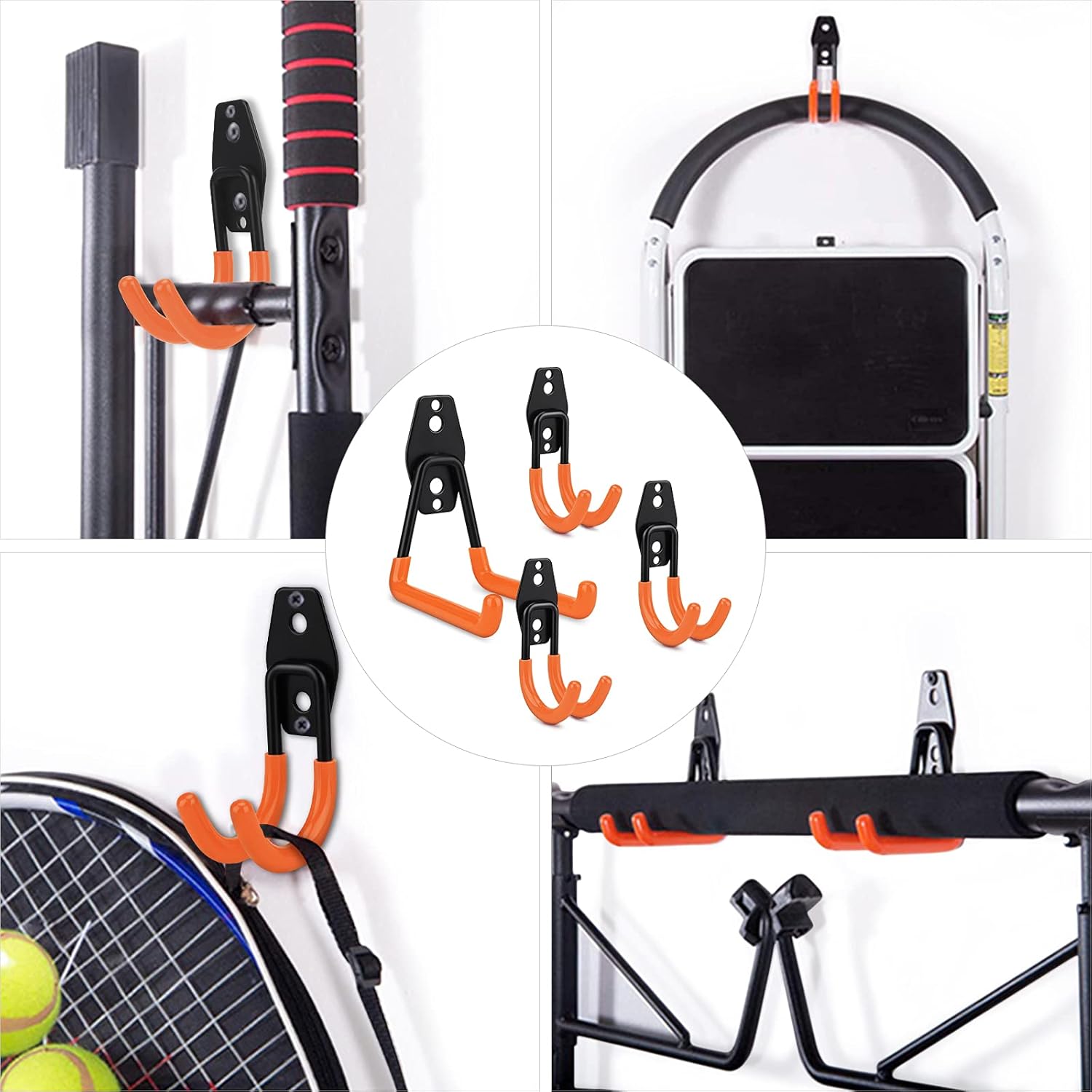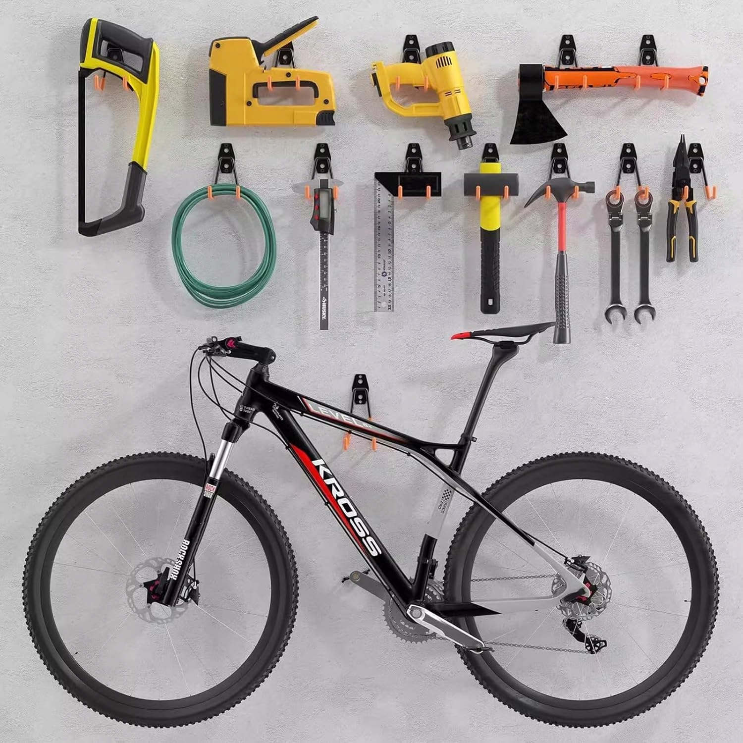 ➡️【Прочные гаражные крючки】Специальные универсальные крючки обеспечивают прочную стальную конструкцию для длительного использования. Эти двойные крючки выдерживают нагрузку до 35 кг, которая охватывает такие предметы, как лестницы, складные стулья, метлы, лопаты, велосипеды и другие предметы, нескользящее ПВХ-покрытие сохраняет предметы в целости и сохранности. Идеальные вешалки для инструментов, которые помогут вам более эффективно использовать вертикальное пространство для хранения, организовывать и находить то, что вам нужно.