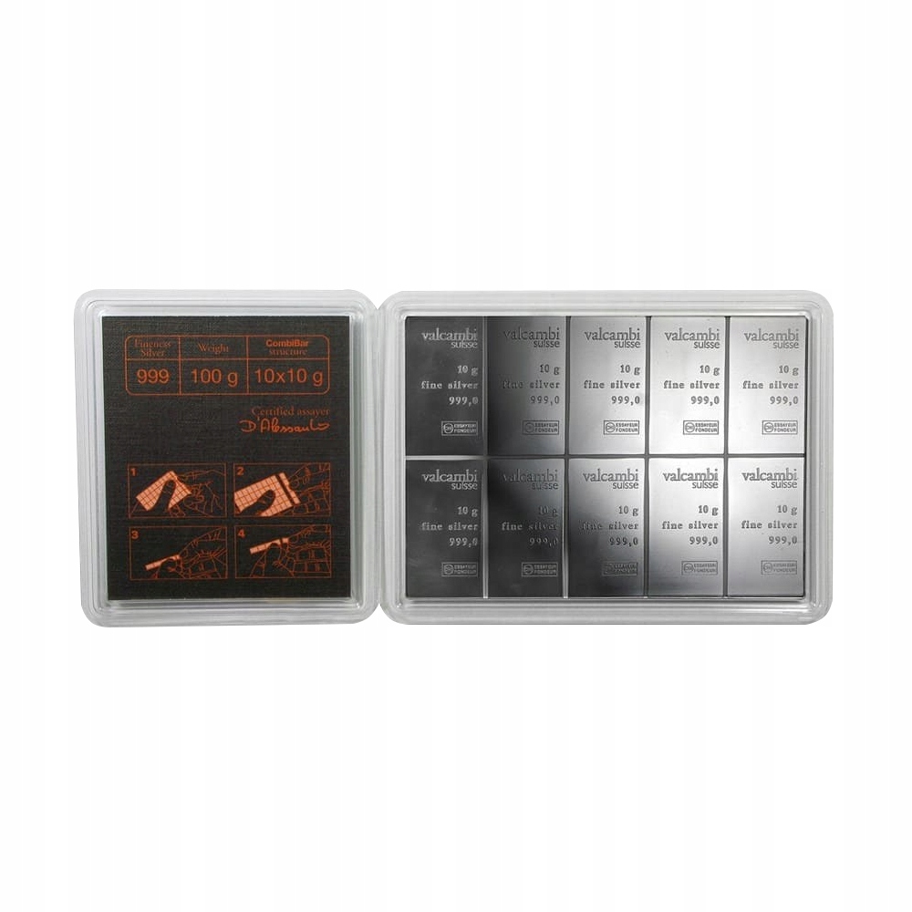 Швейцарский нефтеперерабатывающий завод Valcambi, основанный в 1961 году, был лидером в производстве драгоценных металлов на протяжении десятилетий. Комбибарные бары, представленные на рынке в 2010–2012 годах, были созданы как инновационное решение для инвесторов, ищущих гибкость. Благодаря модульной конструкции (например, 10 x 10 г), он позволяет легко делить на более мелкие единицы, что увеличивает ее практичность при продажах или замене. Сочетая традицию швейцарской точности с современным подходом, Combibar быстро приобрела популярность на рынке инвестиций в серебре, ценится за высокое качество и универсальность. p>