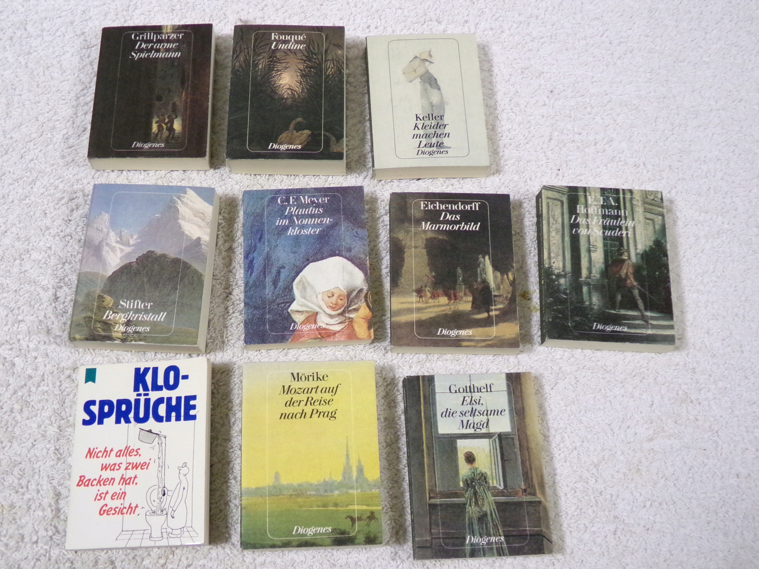 Набор из 10 карманных книжек размером 8х6 см на немецком языке, примерно по 150 страниц в каждой, весом 0,31 кг. В очень хорошем состоянии, без повреждений.