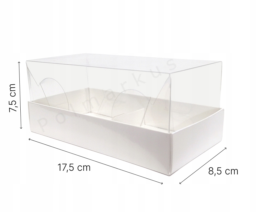 Элегантная коробочка жемчужного цвета с прозрачной крышкой, открывающей содержимое. Идеально подходит для 2-х монопорций, маффинов или маффинов.