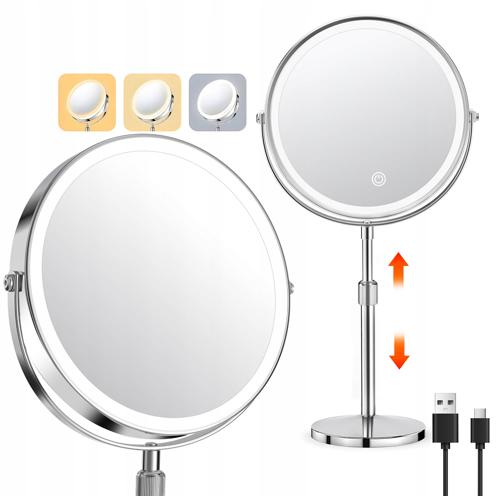 1 перезаряжаемое косметическое зеркало размером 8 дюймов, 10-кратное увеличение, 3 цвета, с регулируемой яркостью и регулировкой по высоте — серебристый