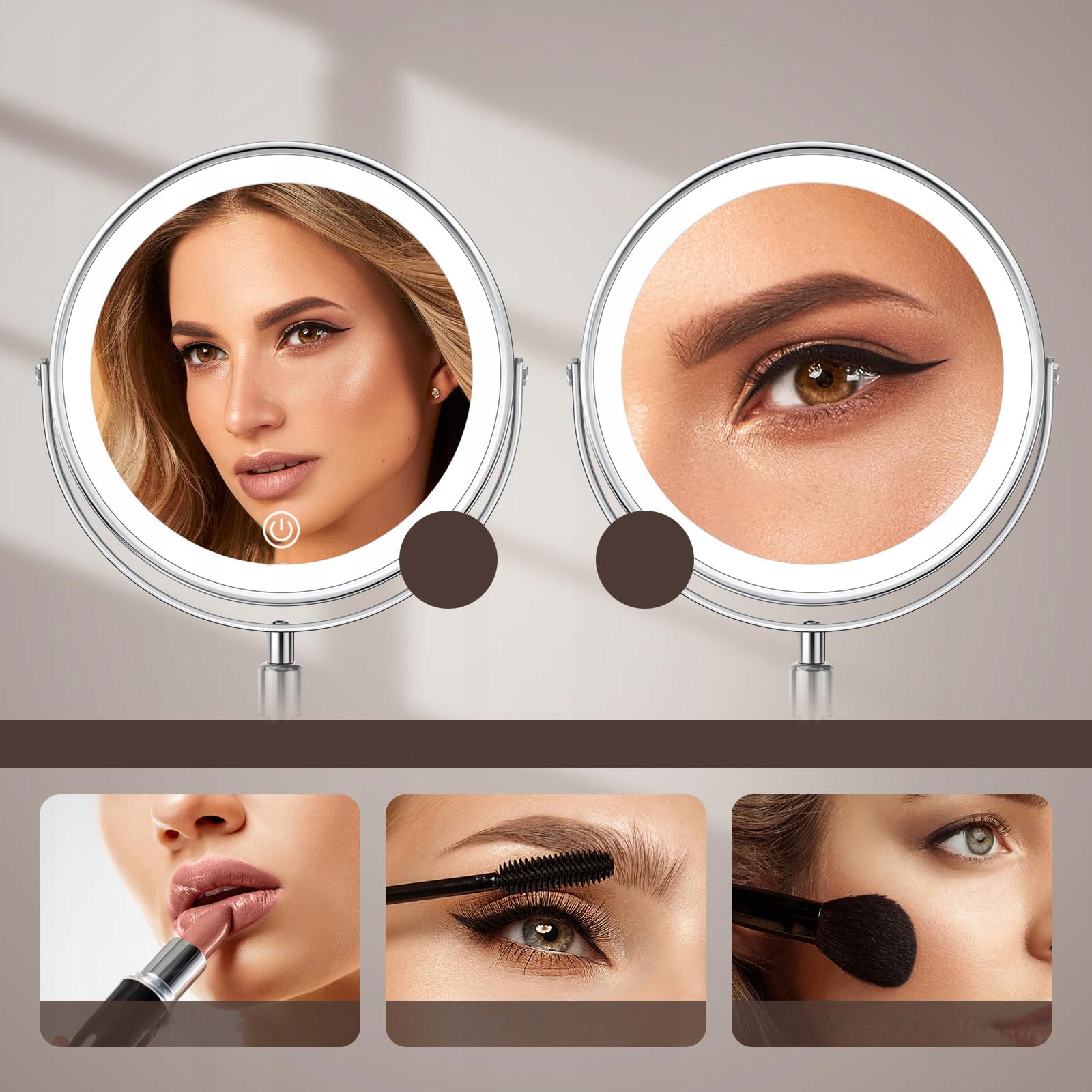 🔍【Зеркало для макияжа с 10-кратным увеличением и подсветкой】: Зеркало для макияжа с 10-кратным увеличением и подсветкой предлагает 1-кратное и 20-кратное увеличение и вращающуюся на 360° конструкцию, идеально подходящую для нанесения макияжа, ношения контактных линз, формирования бровей, бритья, укладки волос или нанесения туши. Легко переключайтесь между увеличениями, как для общего использования, так и для точных задач, таких как брови и подводка для глаз. Наслаждайтесь лучшей видимостью и комфортом с этим увеличительным зеркалом для макияжа.