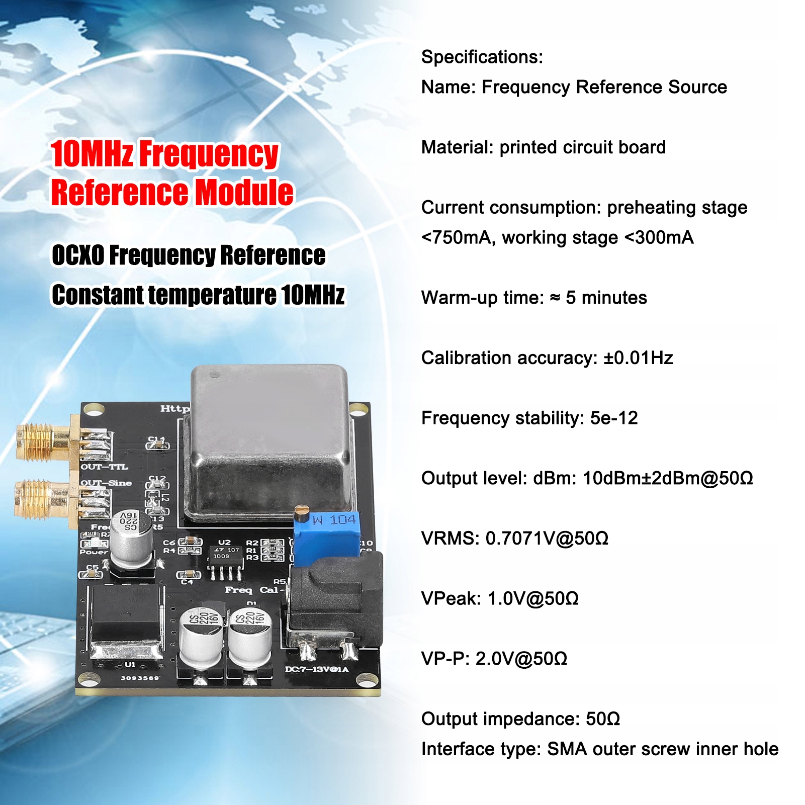 3. Этот продукт принимает стандарт частоты 10 МГц и который обеспечивается контролируемым кристаллическим генератором Ocxo.