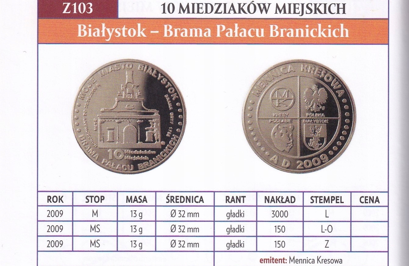 mk103 - 10 Miedziaków miejskie - Białystok Brama of the Branicki Palace - 2009 Mint